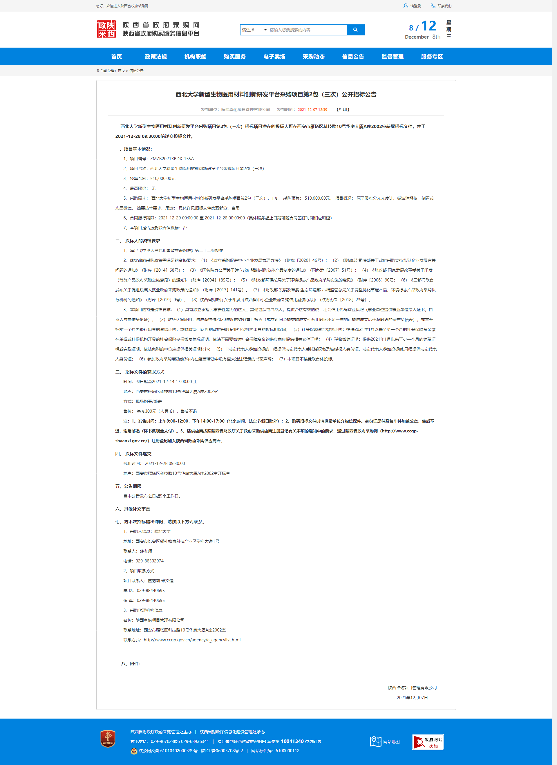 米兰买球新型生物医用材料创新研发平台采购项目第2包(三次)公开招标公告 作者: 编辑:薛利娟 时间:2021-12-08 原公告链接:http://www.ccgp-shaanxi.gov.cn/notice/noticeDetail.do?noticeguid=8a85be347d6a75c8017d92f597c94e2d