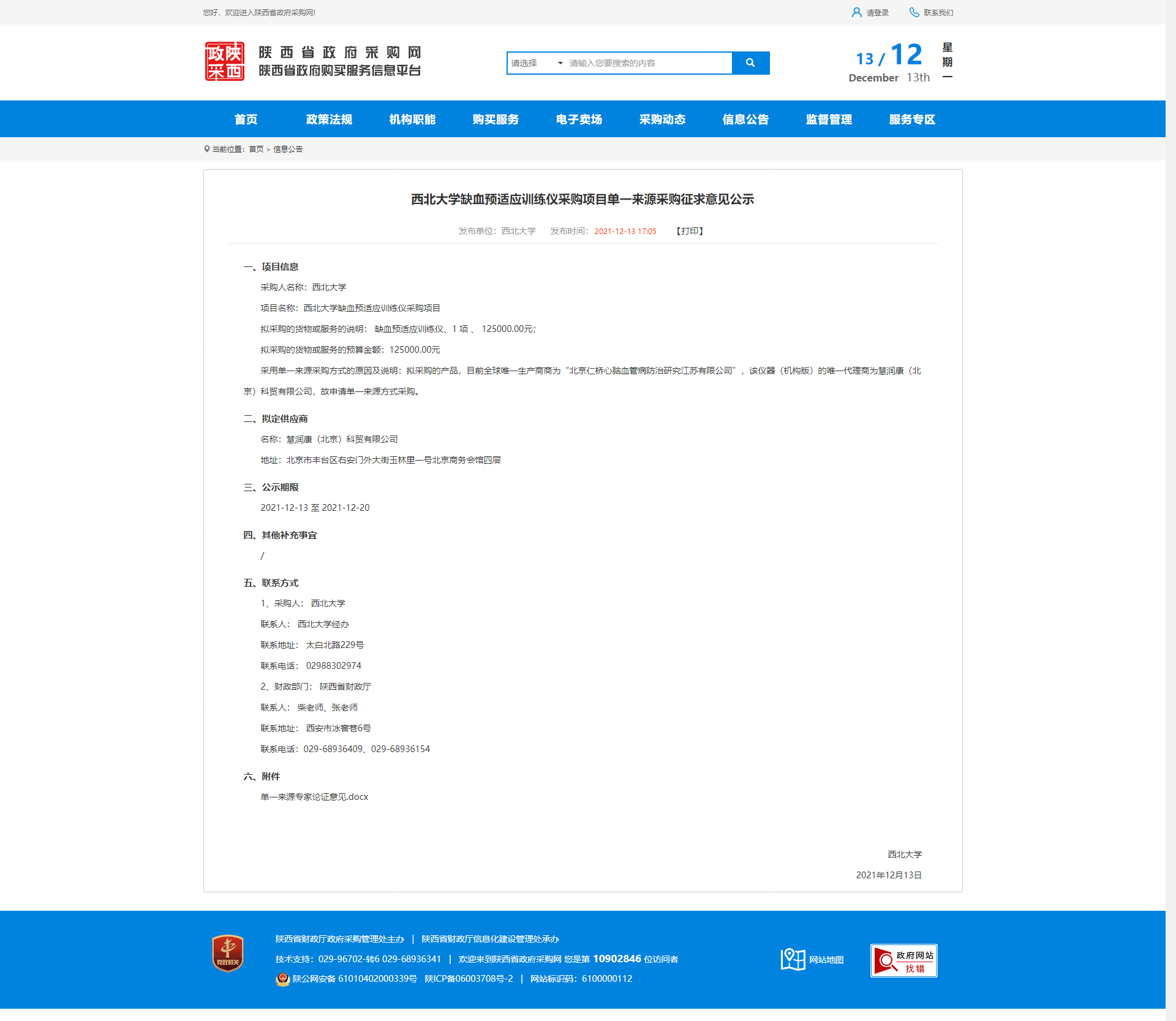 米兰买球缺血预适应训练仪采购项目单一来源采购征求意见公示 作者: 编辑:薛利娟 时间:2021-12-13 原公告链接:http://www.ccgp-shaanxi.gov.cn/notice/noticeDetail.do?noticeguid=8a85be337dace9ea017db302988240e3