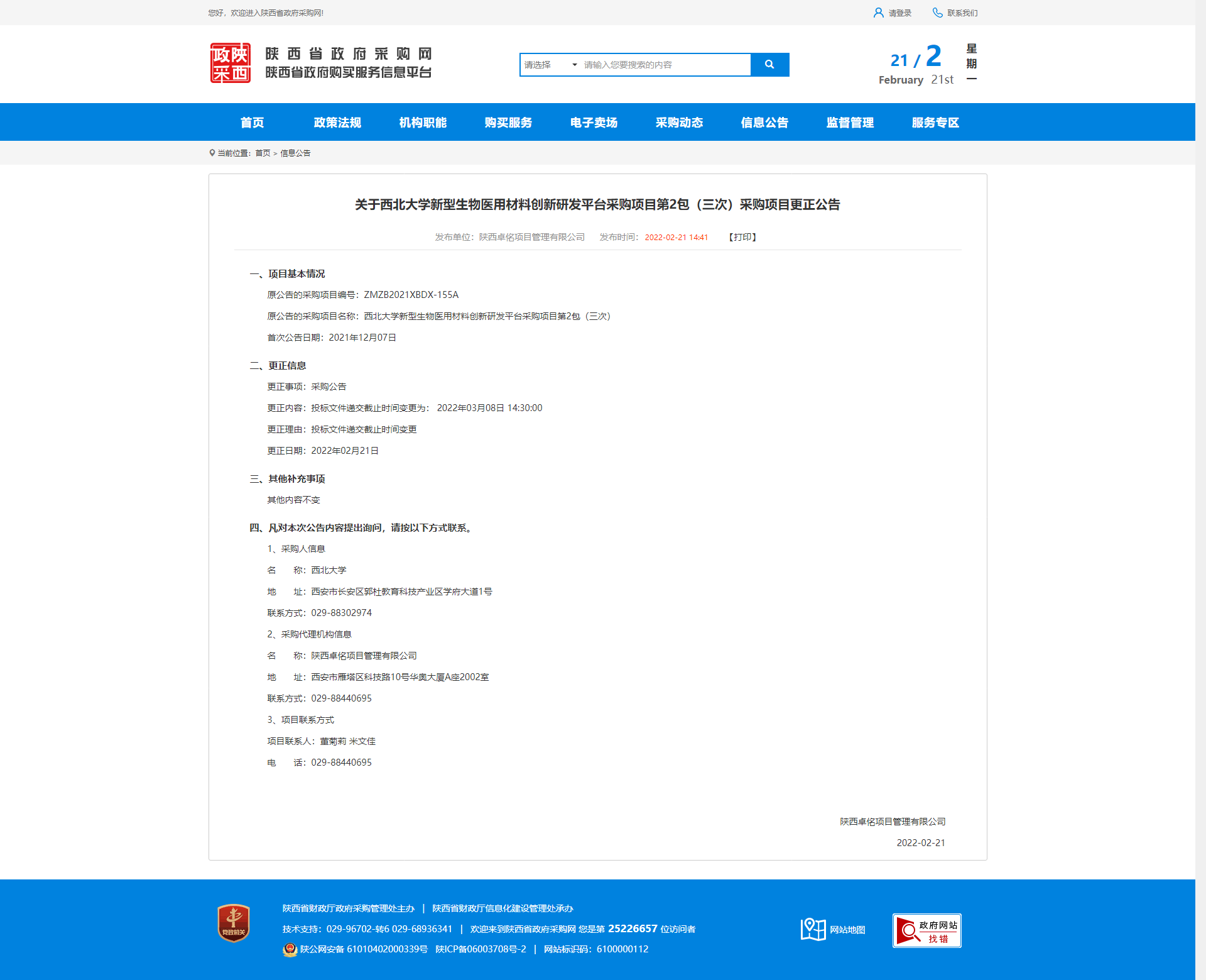 关于米兰买球新型生物医用材料创新研发平台采购项目第2包(三次)采购项目更正公告 作者: 编辑:薛利娟 时间:2022-02-21 原公告链接:http://www.ccgp-shaanxi.gov.cn/notice/noticeDetail.do?noticeguid=8a85be317ee7907d017f1a9fc1d146e6