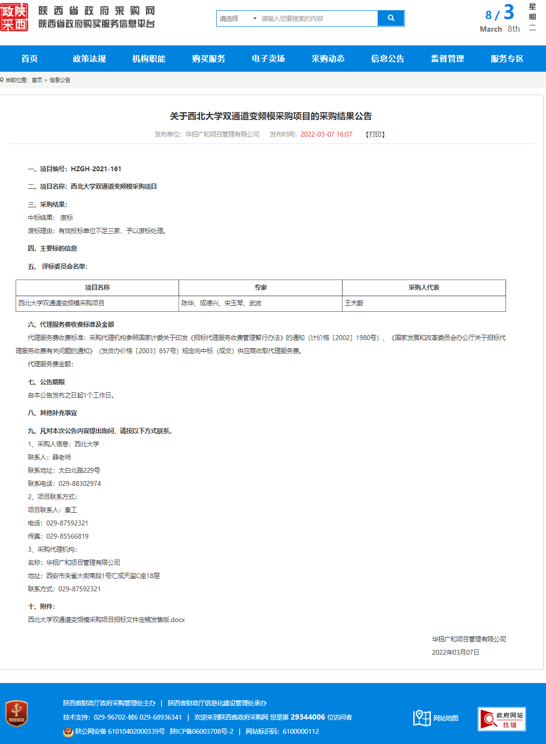 关于米兰买球双通道变频模采购项目的采购结果公告