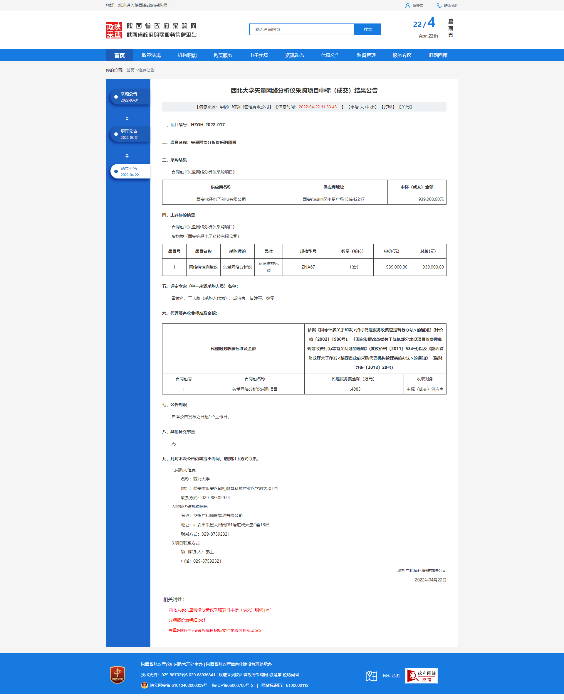 米兰买球矢量网络分析仪采购项目中标(成交)结果公告 作者: 编辑:薛利娟 时间:2022-04-22 原公告链接:http://www.ccgp-shaanxi.gov.cn/freecms/site/shaanxi/ggxx/info/2022/8a69c3a2803c3c1c01804f4570841746.html?noticeType=001021¬iceId=9725019f-c1ed-11ec-9a8e-08c0eb20c666