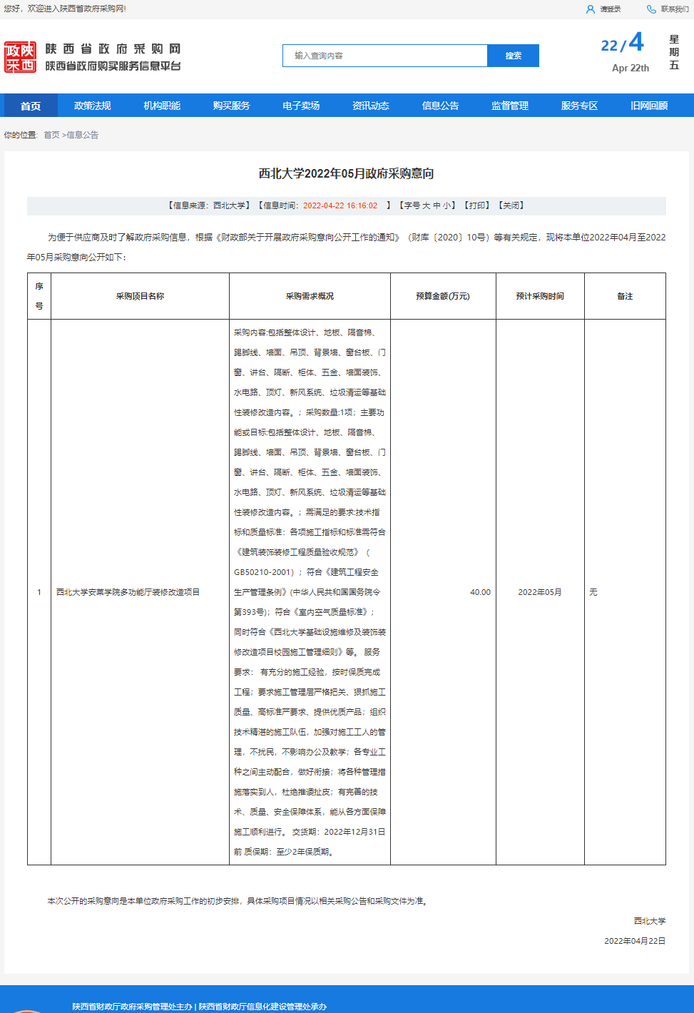 米兰买球2022年05月政府采购意向