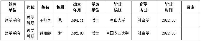 关于教学科研单位选聘教师情况的公示
