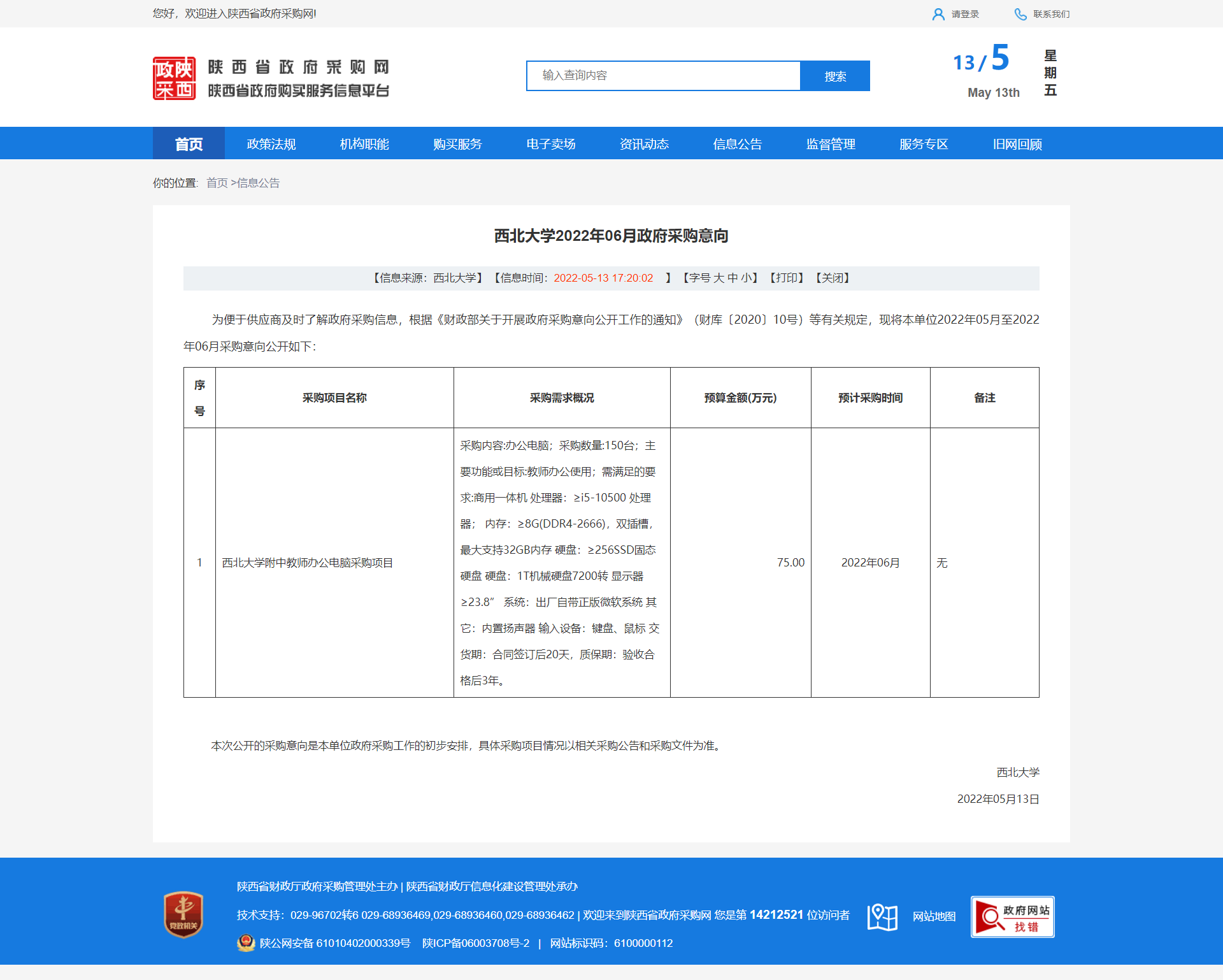 米兰买球2022年06月政府采购意向 作者: 编辑:薛利娟 时间:2022-05-13 原公告链接:http://www.ccgp-shaanxi.gov.cn/freecms/site/shaanxi/ggxx/info/2022/8a69c0c980ba996a0180bcb638123331.html?noticeType=59¬iceId=147b64d1-d29e-11ec-9a8e-08c0eb20c666