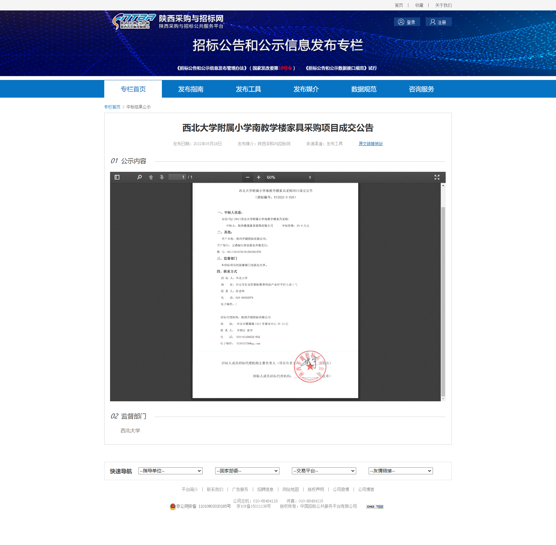 米兰买球附属小学南教学楼家具采购项目成交公告 作者: 编辑:薛利娟 时间:2022-05-19 原公告链接:http://bulletin.sntba.com/resultBulletin/2022-05-18/422515.html