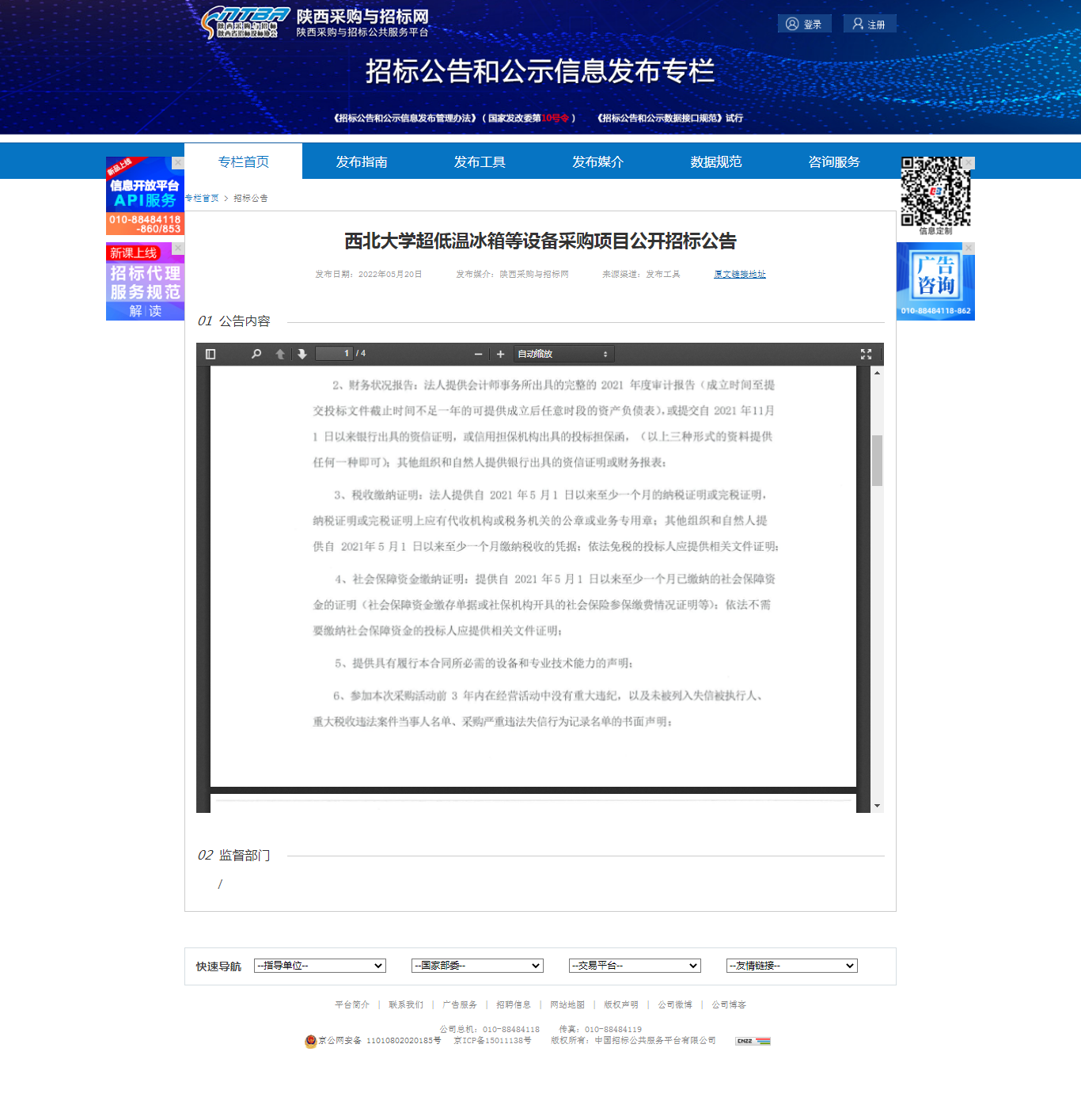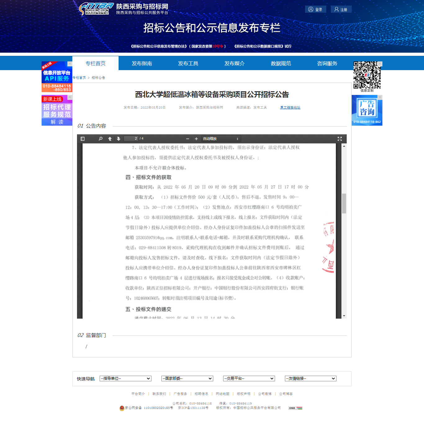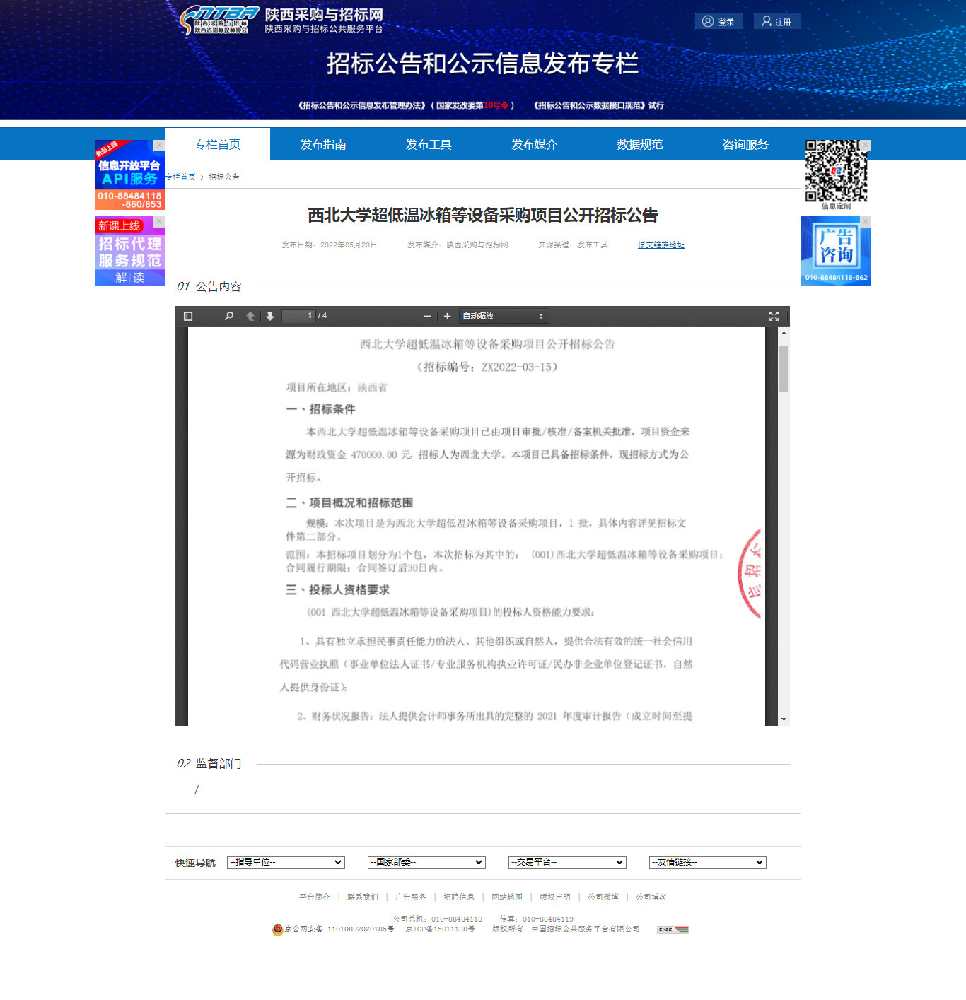 米兰买球超低温冰箱等设备采购项目公开招标公告 作者: 编辑:薛利娟 时间:2022-05-20 原公告链接:http://bulletin.sntba.com/biddingBulletin/2022-05-20/423536.html