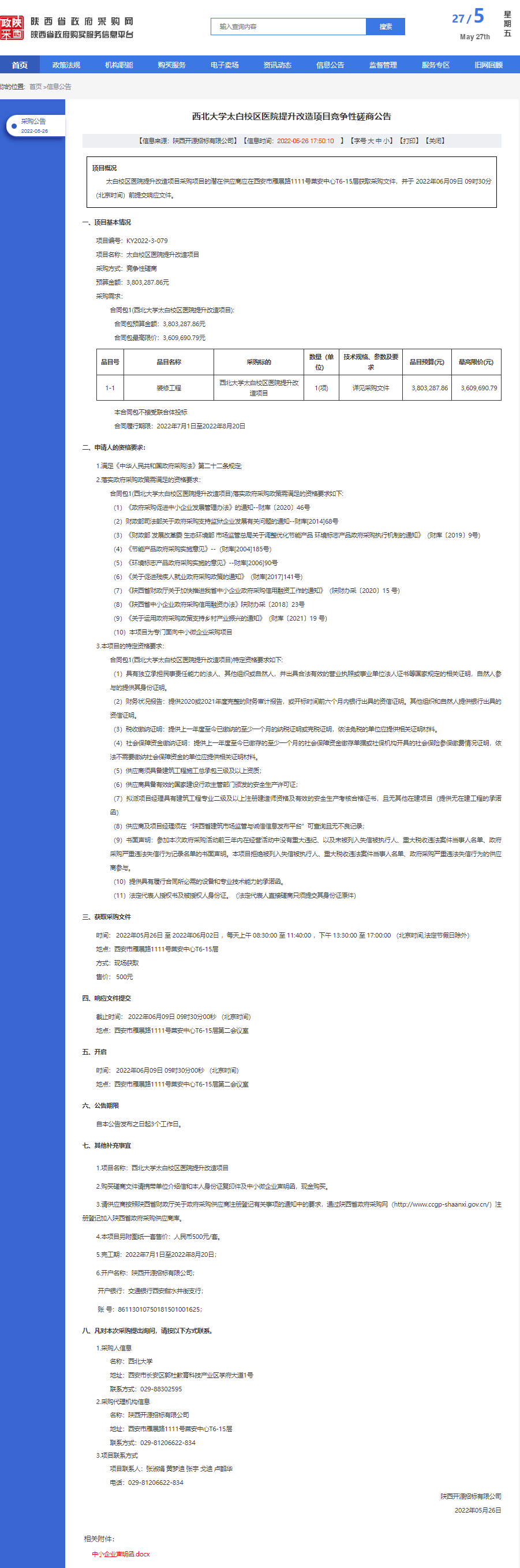 米兰买球太白校区医院提升改造项目竞争性磋商公告