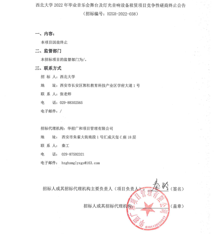 关于米兰买球2022年毕业音乐会舞台及灯光音响设备租赁项目竞争性磋商终止公告
