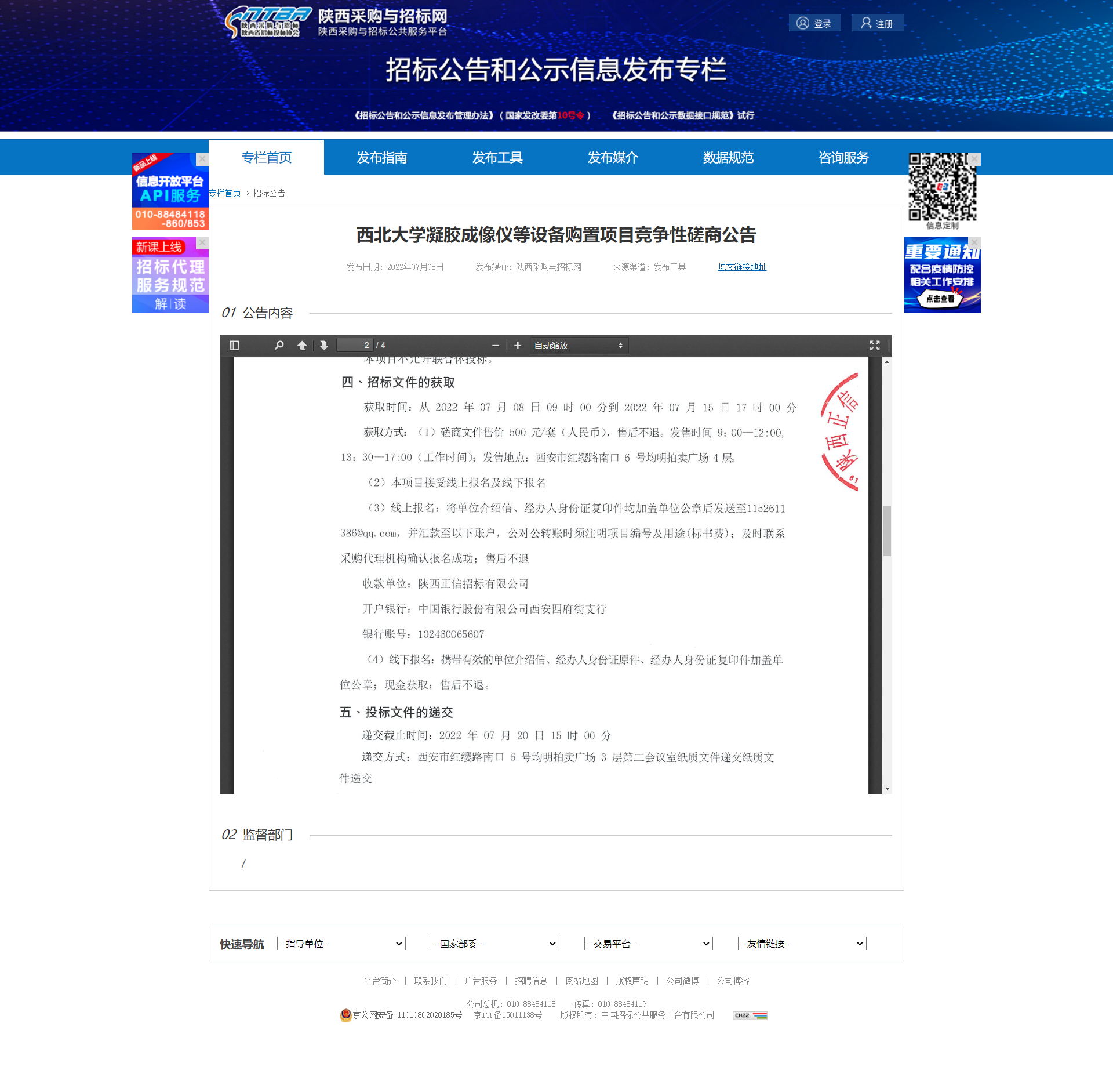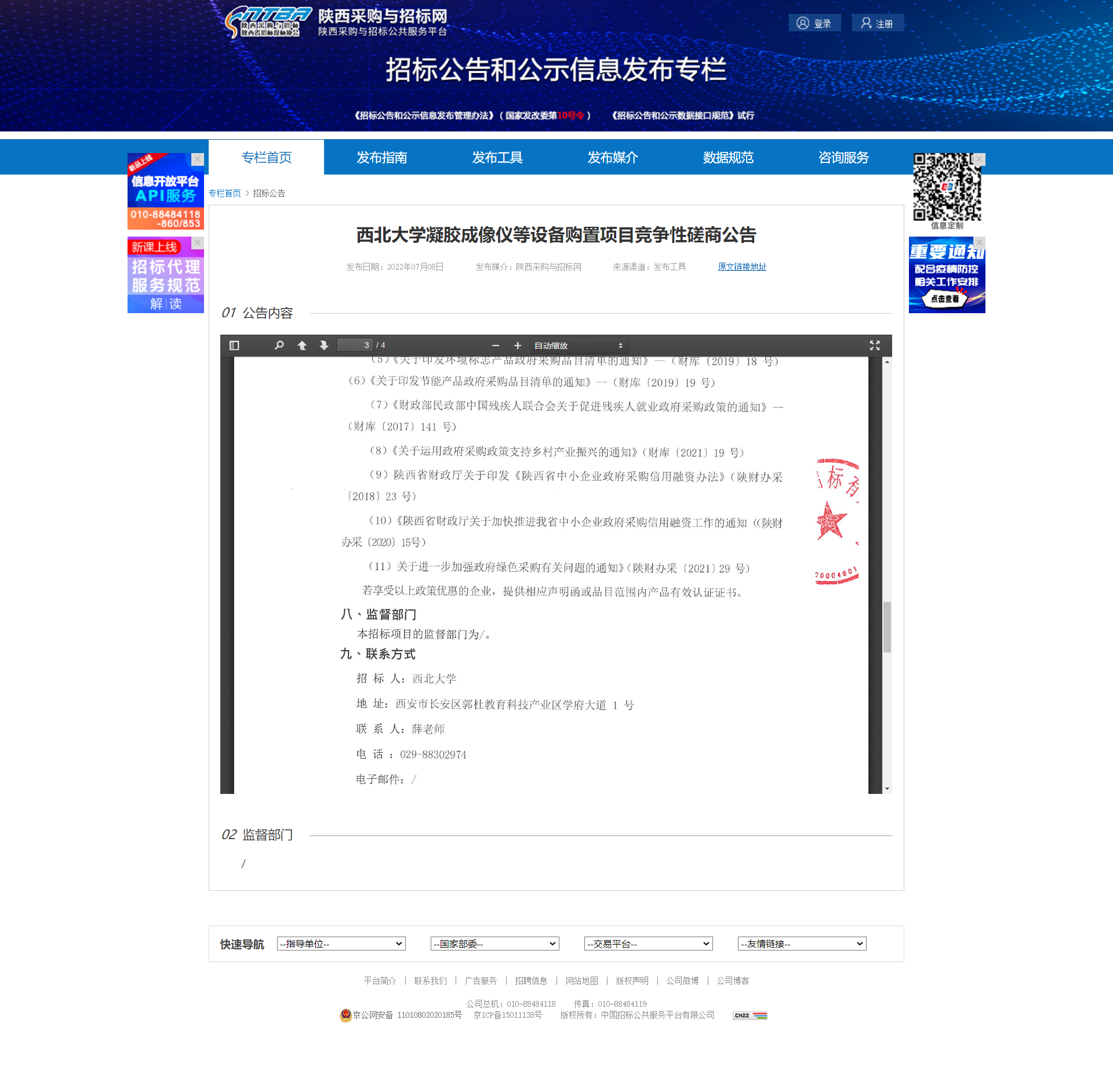 米兰买球凝胶成像仪等设备购置项目竞争性磋商公告 作者: 编辑:薛利娟 时间:2022-07-08 原公告链接:http://bulletin.sntba.com/biddingBulletin/2022-07-08/445120.html