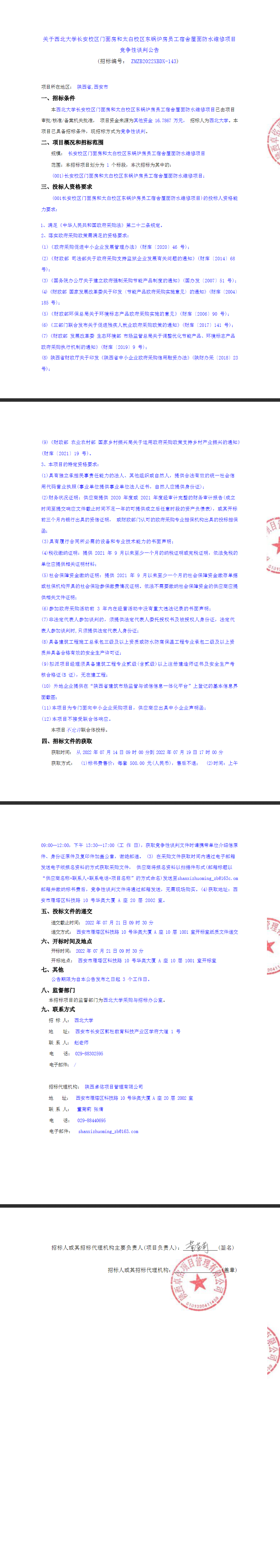 关于米兰买球长安校区门面房和太白校区东锅炉房员工宿舍屋面防水维修项目竞争性谈判公告