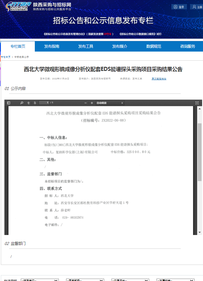 米兰买球微观形貌成像分析仪配套EDS能谱探头采购项目采购结果公告 作者: 编辑:采购与招标办公室 时间:2022-07-25 原公告链接:http://bulletin.sntba.com/resultBulletin/2022-07-25/451944.html