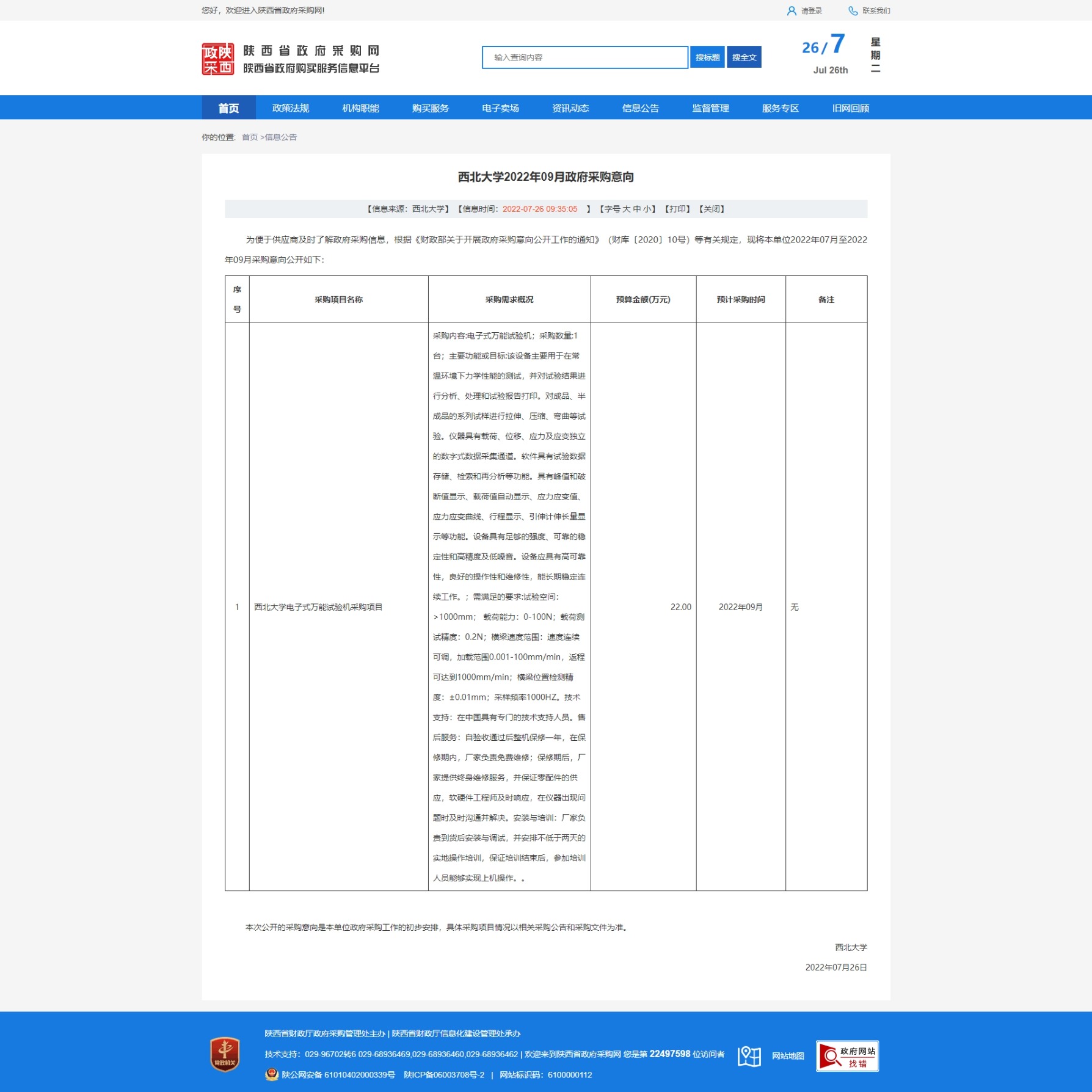 米兰买球2022年09月政府采购意向 作者: 编辑:采购与招标办公室 时间:2022-07-26 原公告链接:http://www.ccgp-shaanxi.gov.cn/freecms/site/shaanxi/ggxx/info/2022/8a69c98382103559018210e050bc5cf5.html?noticeType=59¬iceId=9116edec-0c83-11ed-9a8e-08c0eb20c666