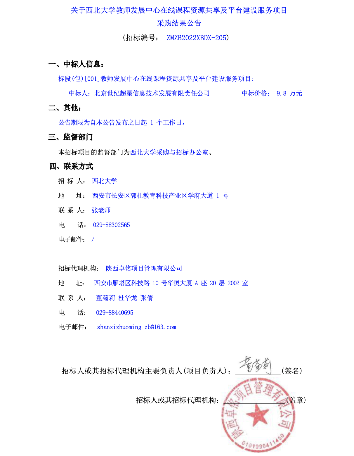 关于米兰买球教师发展中心在线课程资源共享及平台建设服务项目采购结果公告