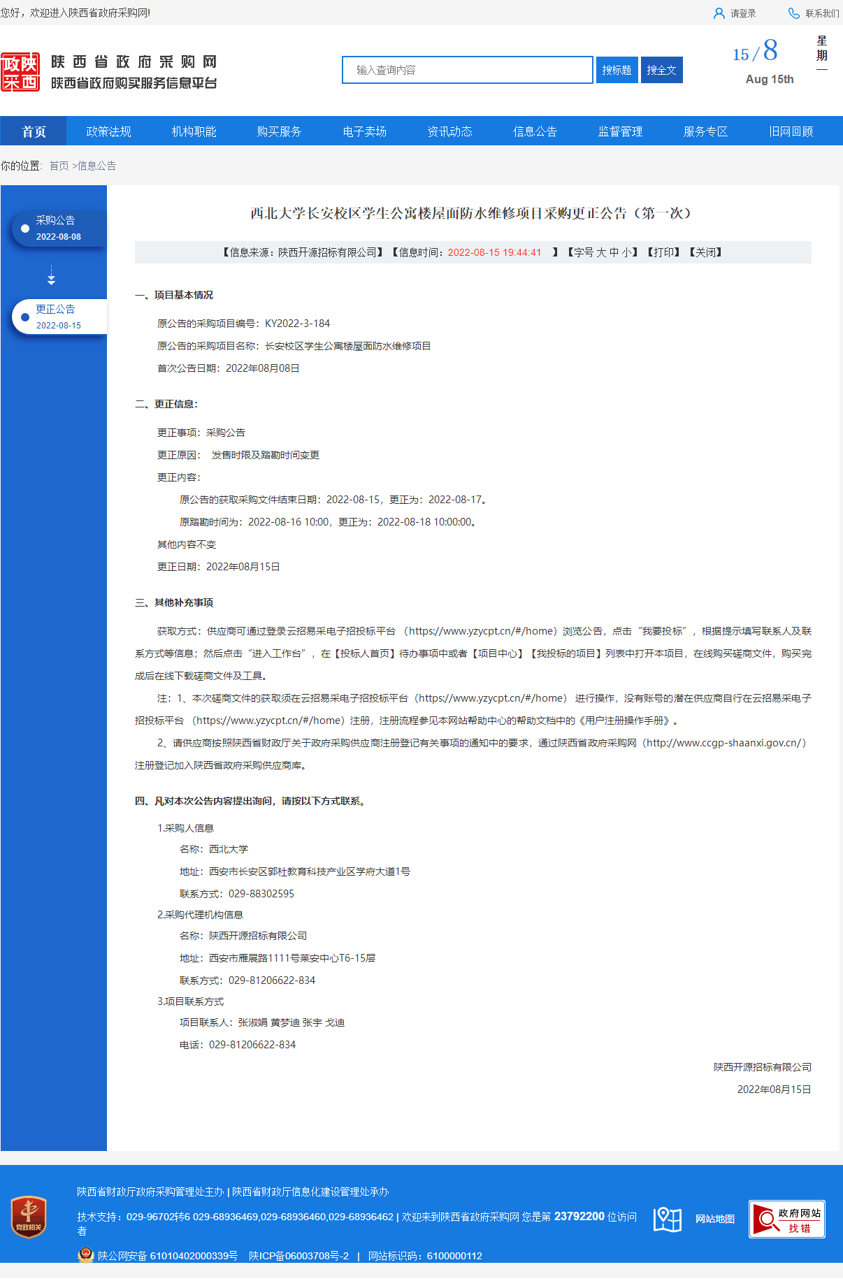 米兰买球长安校区学生公寓楼屋面防水维修项目采购更正公告(第一次)