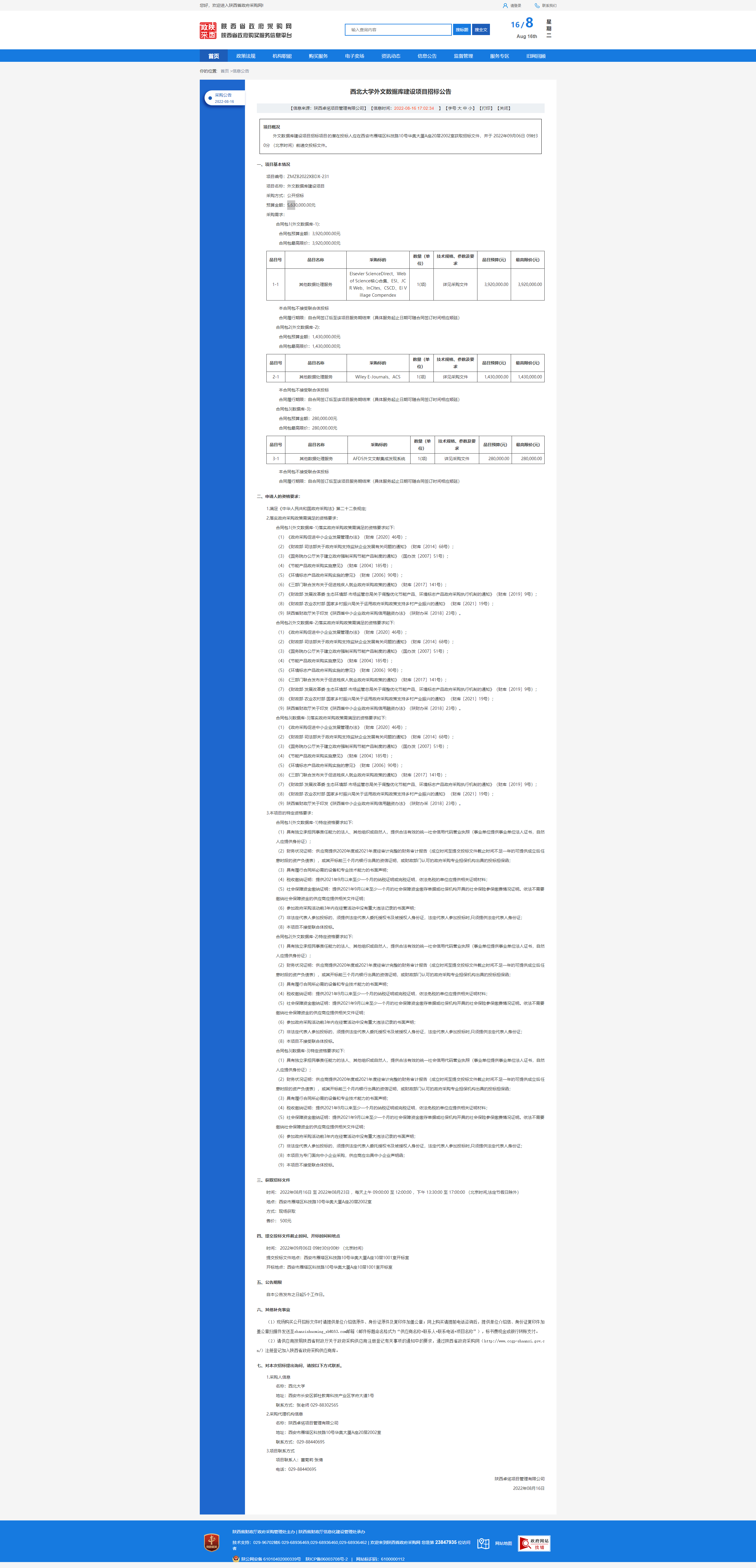 米兰买球外文数据库建设项目招标公告