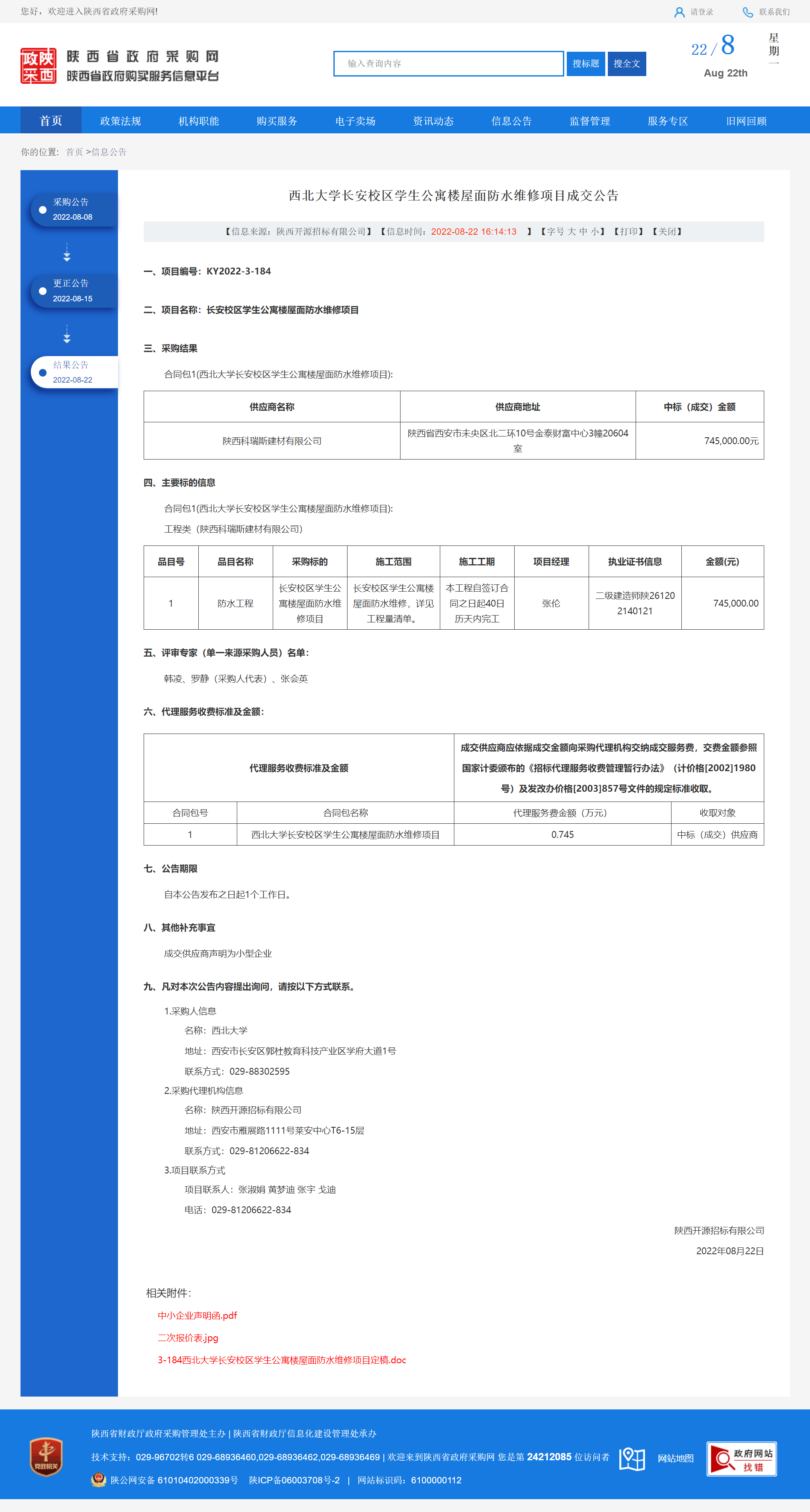 米兰买球长安校区学生公寓楼屋面防水维修项目成交公告