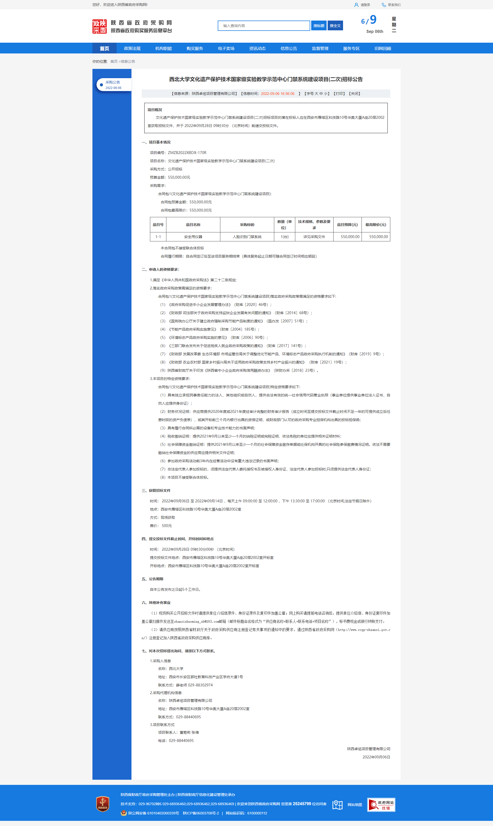 米兰买球文化遗产保护技术国家级实验教学示范中心门禁系统建设项目(二次)招标公告 作者: 编辑:采购与招标办公室 时间:2022-09-06 原公告链接:http://www.ccgp-shaanxi.gov.cn/freecms/site/shaanxi/ggxx/info/2022/8a69c63182a32538018311f9ef2e1370.html?noticeType=001011¬iceId=3d8b61ff-2dc2-11ed-9a8e-08c0eb20c666