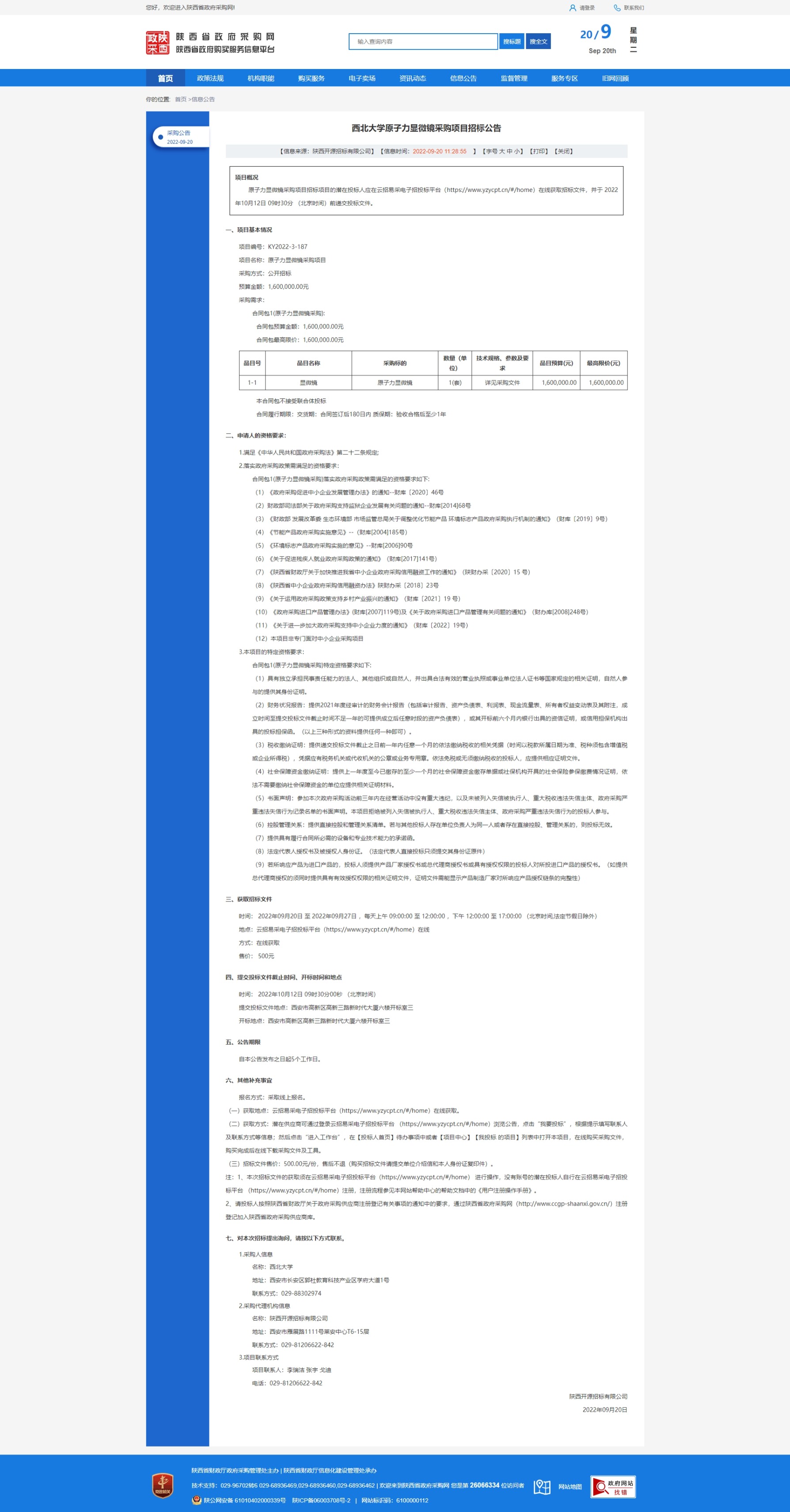 米兰买球原子力显微镜采购项目招标公告 作者: 编辑:采购与招标办公室 时间:2022-09-20 原公告链接:http://www.ccgp-shaanxi.gov.cn/freecms/site/shaanxi/ggxx/info/2022/8a69c59682a320a4018358e0a14f096f.html?noticeType=001011¬iceId=e11262de-3894-11ed-9a8e-08c0eb20c666