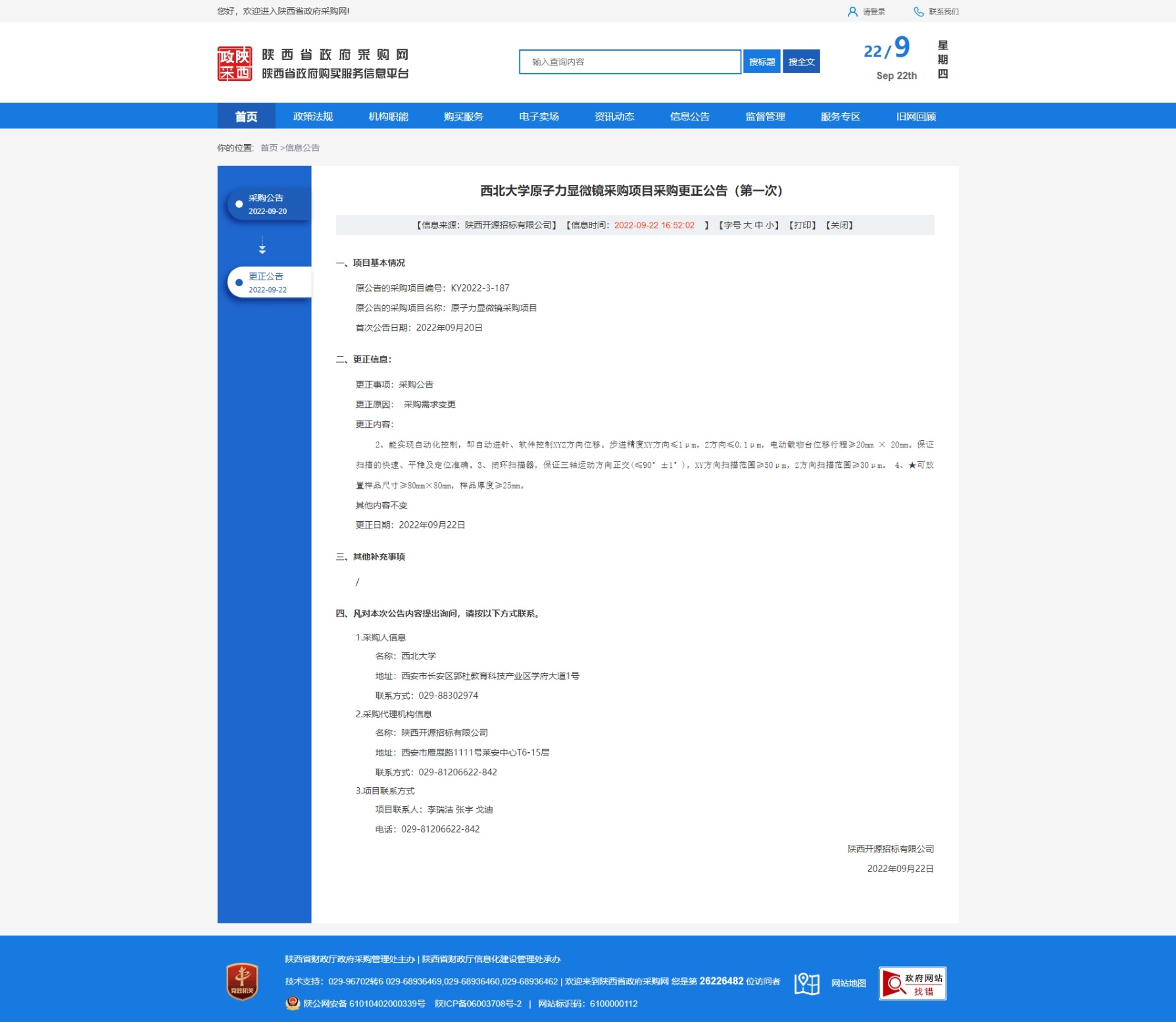 米兰买球原子力显微镜采购项目采购更正公告 作者: 编辑:采购与招标办公室 时间:2022-09-22 原公告链接:http://www.ccgp-shaanxi.gov.cn/freecms/site/shaanxi/ggxx/info/2022/8a69c59682a320a40183643e1ba02b5a.html?noticeType=001031¬iceId=5a0f225c-3a54-11ed-9a8e-08c0eb20c666