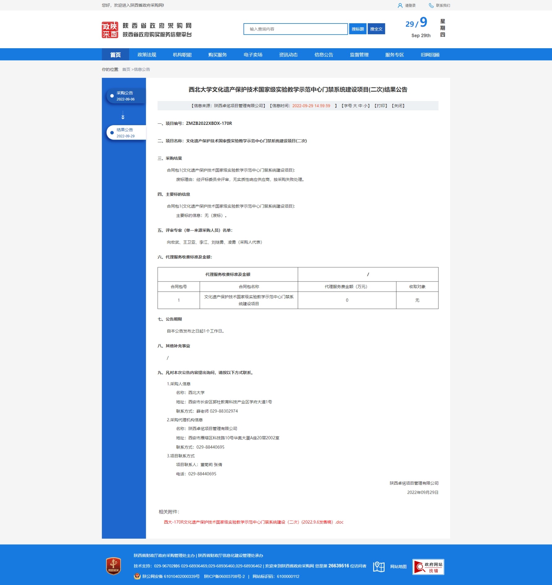 米兰买球文化遗产保护技术国家级实验教学示范中心门禁系统建设项目(二次)结果公告 作者: 编辑:采购与招标办公室 时间:2022-09-29 原公告链接:http://www.ccgp-shaanxi.gov.cn/freecms/site/shaanxi/ggxx/info/2022/8a69c63182a3253801838804b178380f.html?noticeType=001006¬iceId=dee0a350-3fc4-11ed-9a8e-08c0eb20c666