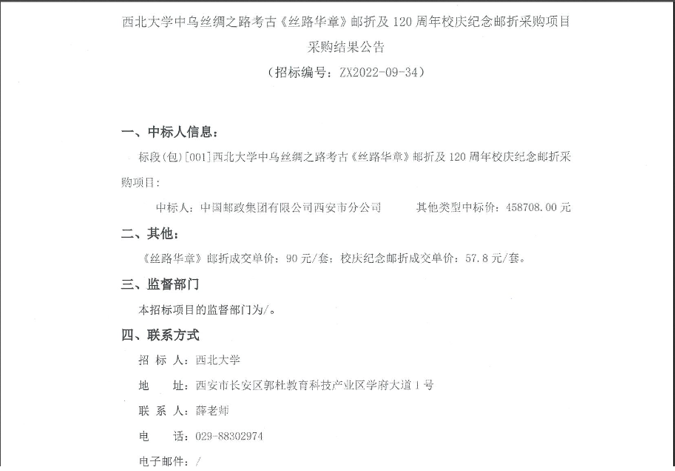 米兰买球中乌丝绸之路考古《丝路华章》邮折及120周年校庆纪念邮折采购项目采购结果公告 作者: 编辑:采购与招标办公室 时间:2022-10-09 原公告链接:http://bulletin.sntba.com/resultBulletin/2022-10-08/482720.html