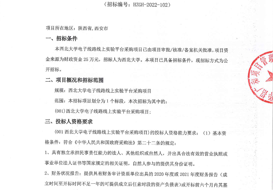米兰买球电子线路线上实验平台采购项目公开招标公告 作者: 编辑:采购与招标办公室 时间:2022-11-04 原公告链接:http://bulletin.sntba.com/biddingBulletin/2022-11-04/494688.html