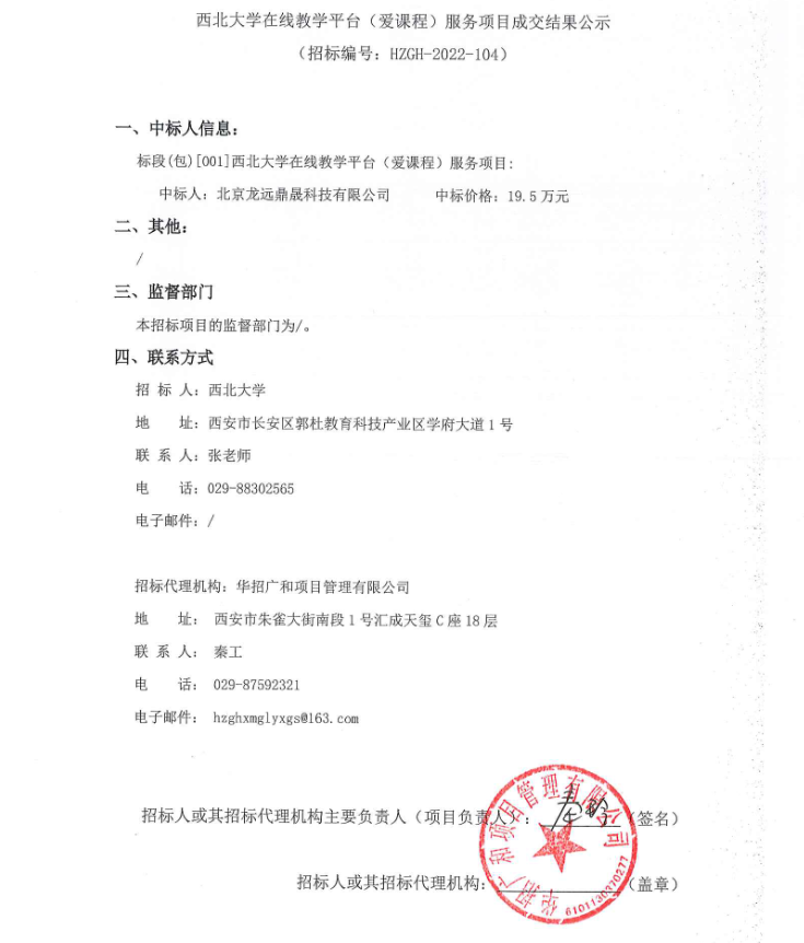 米兰买球在线教学平台(爱课程)服务项目成交结果公示