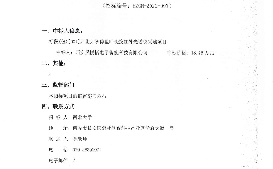 米兰买球傅里叶变换红外光谱仪采购项目中标结果公示 作者: 编辑:采购与招标办公室 时间:2022-11-23 原公告链接:http://bulletin.sntba.com/resultBulletin/2022-11-23/502120.html