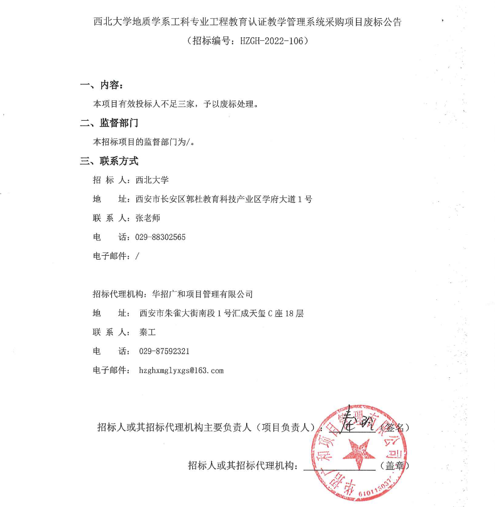 米兰买球地质学系工科专业工程教育认证教学管理系统采购项目废标公告