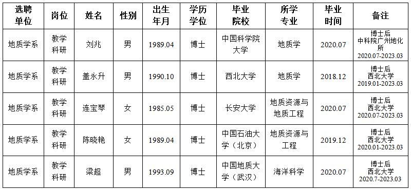 经用人单位及教学督导考核、学校研究,拟同意选聘下列人员来校工作,其聘任关系为A类人事代理。本着公平、公正、公开的原则,现将拟选聘人员基本情况公示如下: