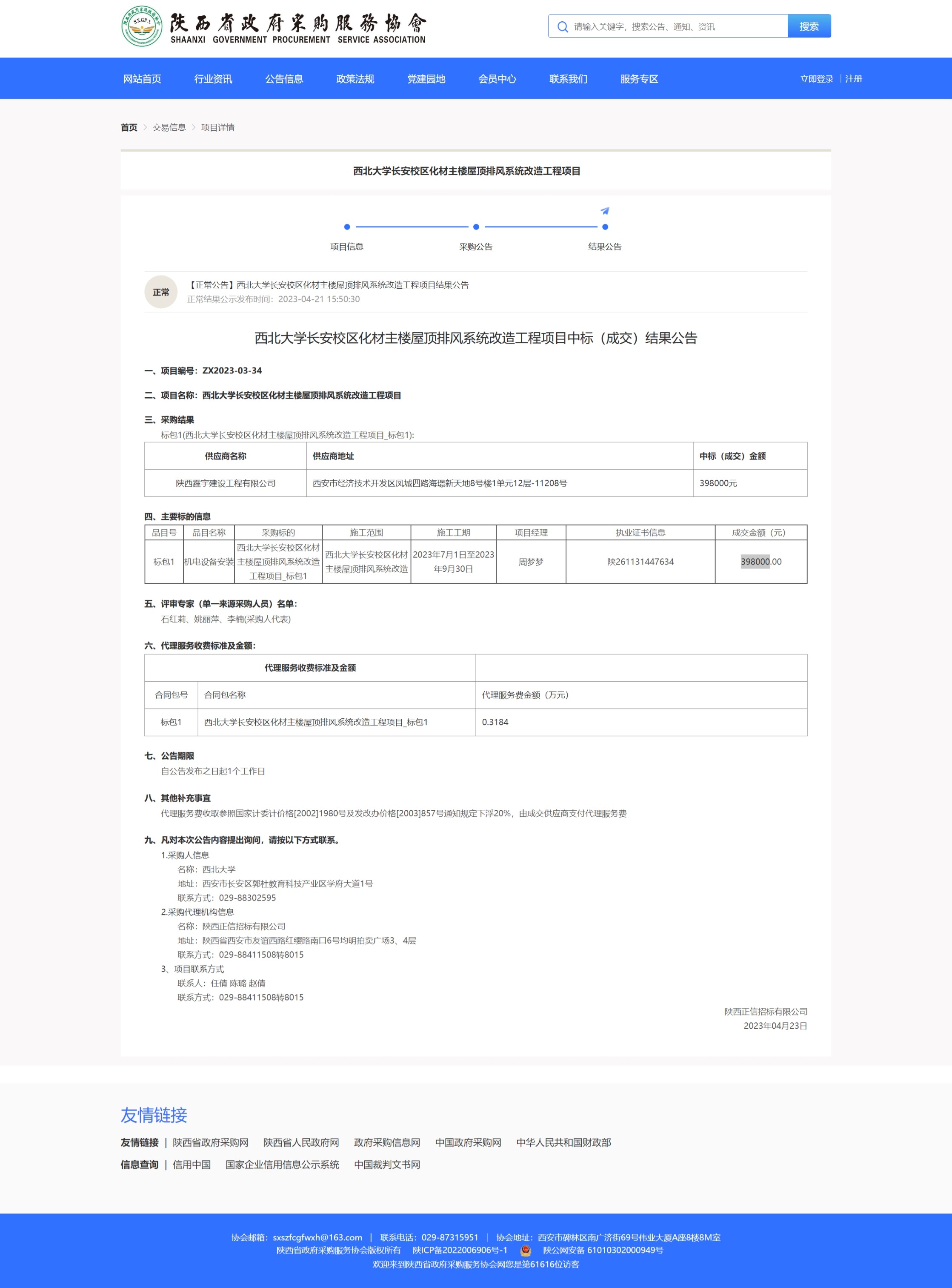 米兰买球长安校区化材主楼屋顶排风系统改造工程项目中标(成交)结果公告