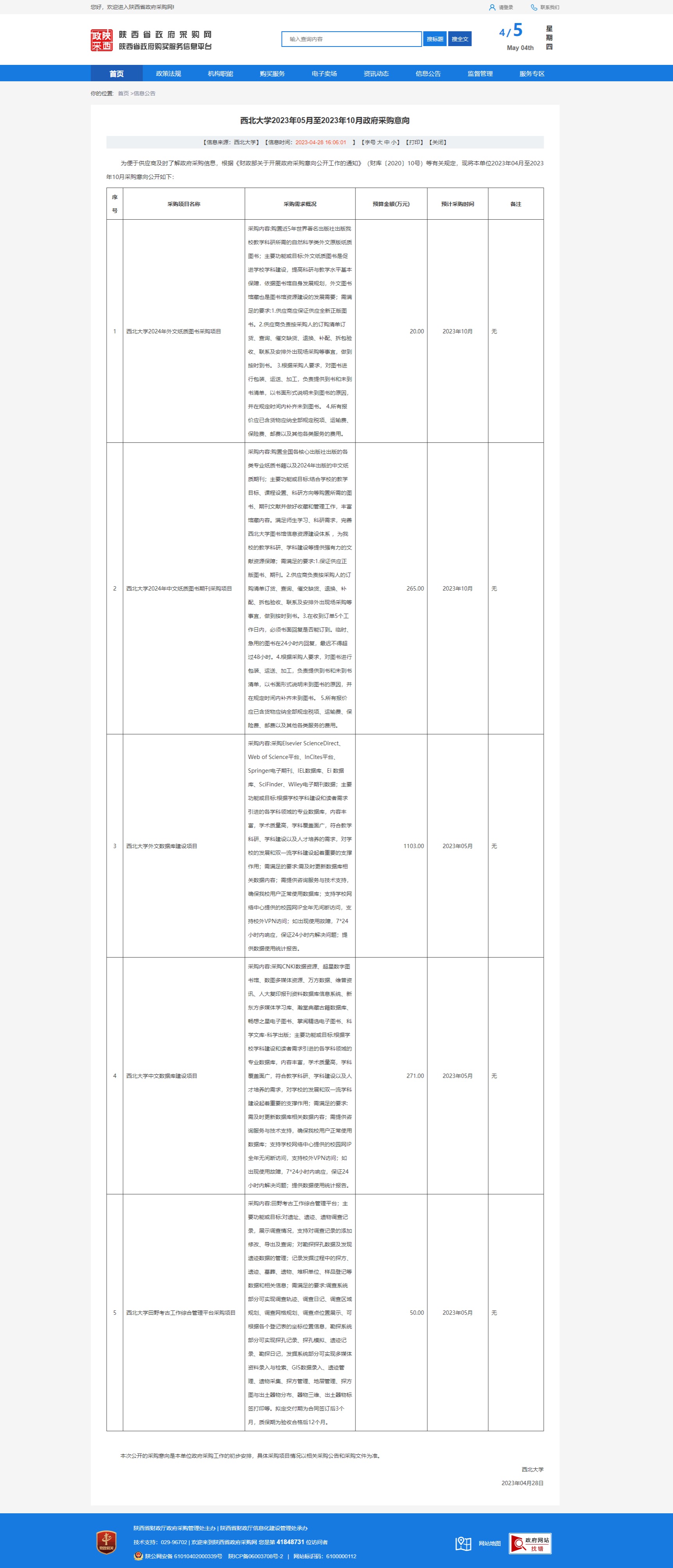 米兰买球2023年05月至2023年10月政府采购意向