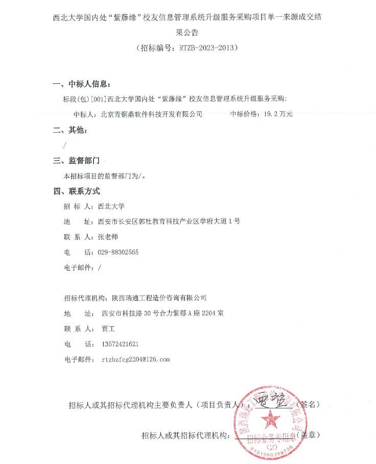 米兰买球国内处“紫藤缘”校友信息管理系统升级服务采购项目单一来源成交结果公告