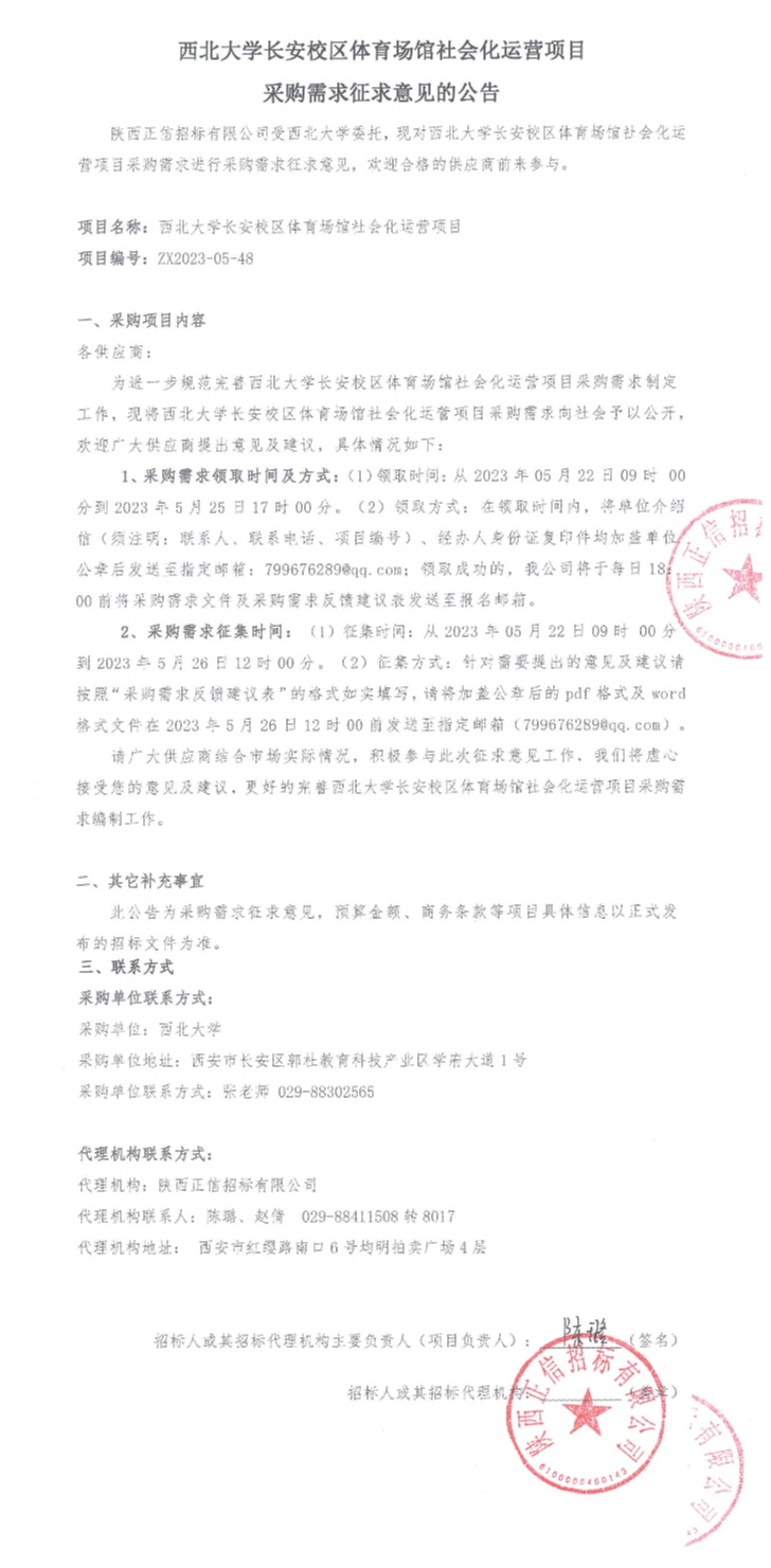 米兰买球长安校区体育场馆社会化运营项目采购需求征求意见的公告