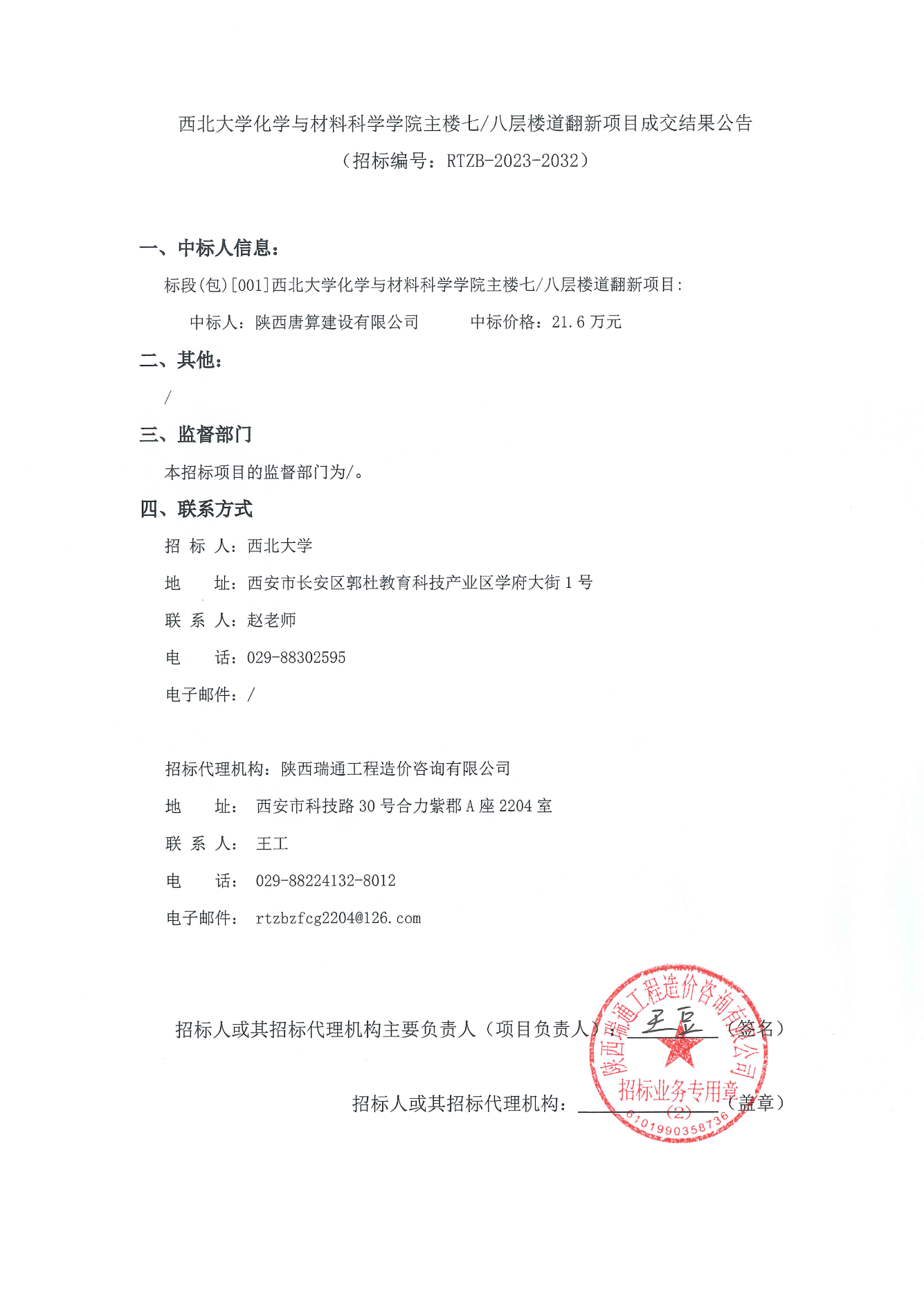 米兰买球化学与材料科学学院主楼七/八层楼道翻新项目成交结果公告