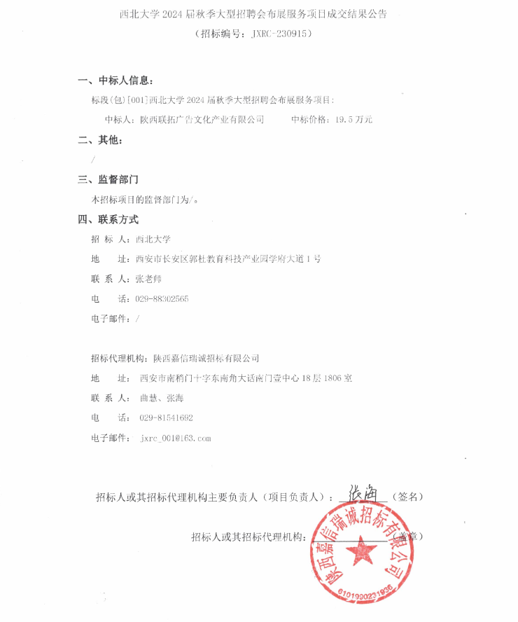 米兰买球2024届秋季大型招聘会布展服务项目成交结果公告