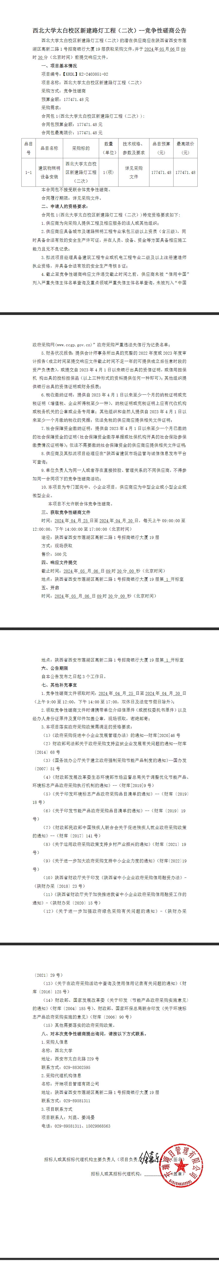 米兰买球太白校区新建路灯工程(二次)竞争性磋商公告