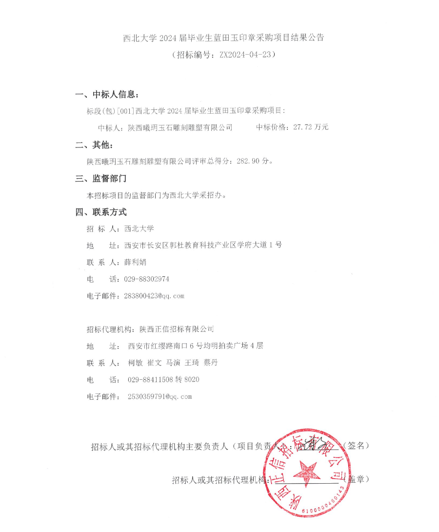 米兰买球2024届毕业生蓝田玉印章采购项目结果公告