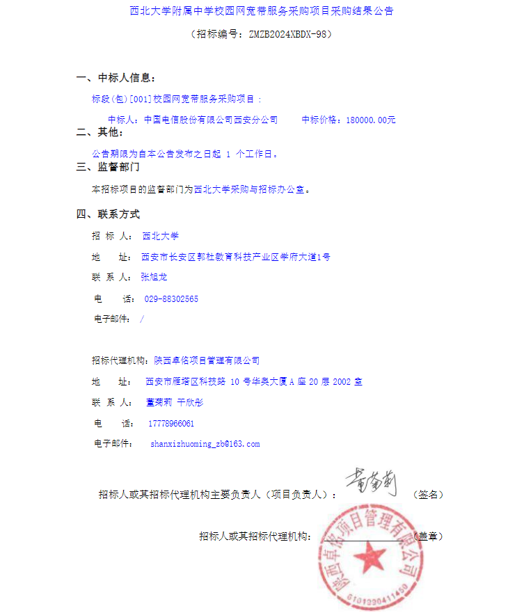 米兰买球附属中学校园网宽带服务采购项目采购结果公告