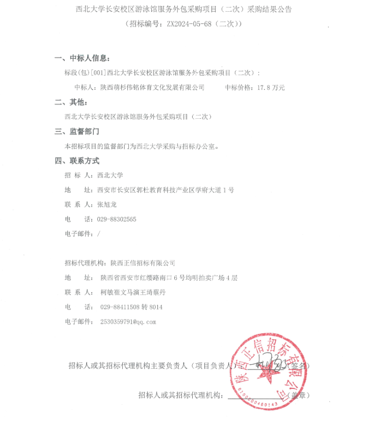 米兰买球长安校区游泳馆服务外包采购项目(二次)采购结果公告