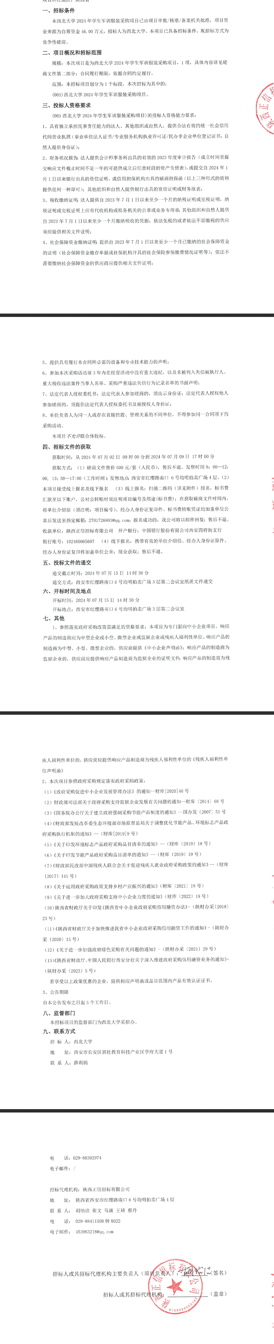 米兰买球2024年学生军训服装采购项目竞争性磋商公告 作者: 编辑: 时间:2024-07-02 原公告链接:http://bulletin.sntba.com/biddingBulletin/2024-07-02/1563911.html