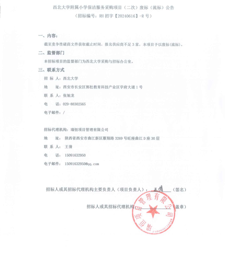 米兰买球附属小学保洁服务采购项目(二次)废标(流标)公告