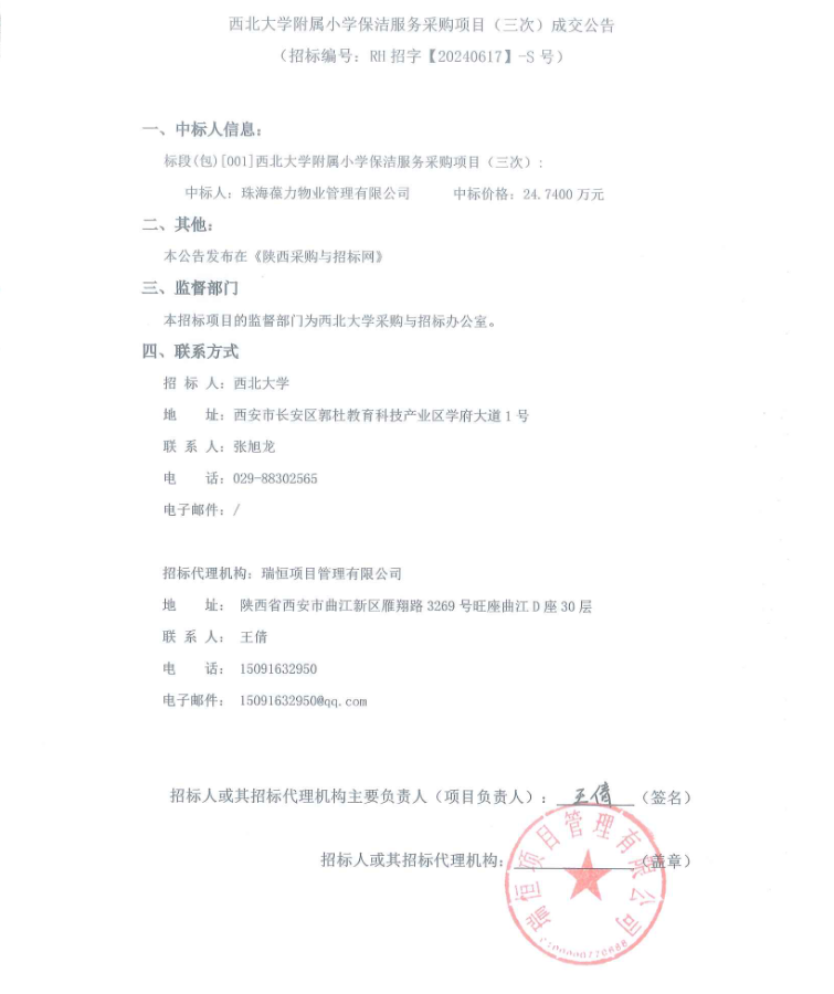 米兰买球附属小学保洁服务采购项目(三次)成交公告