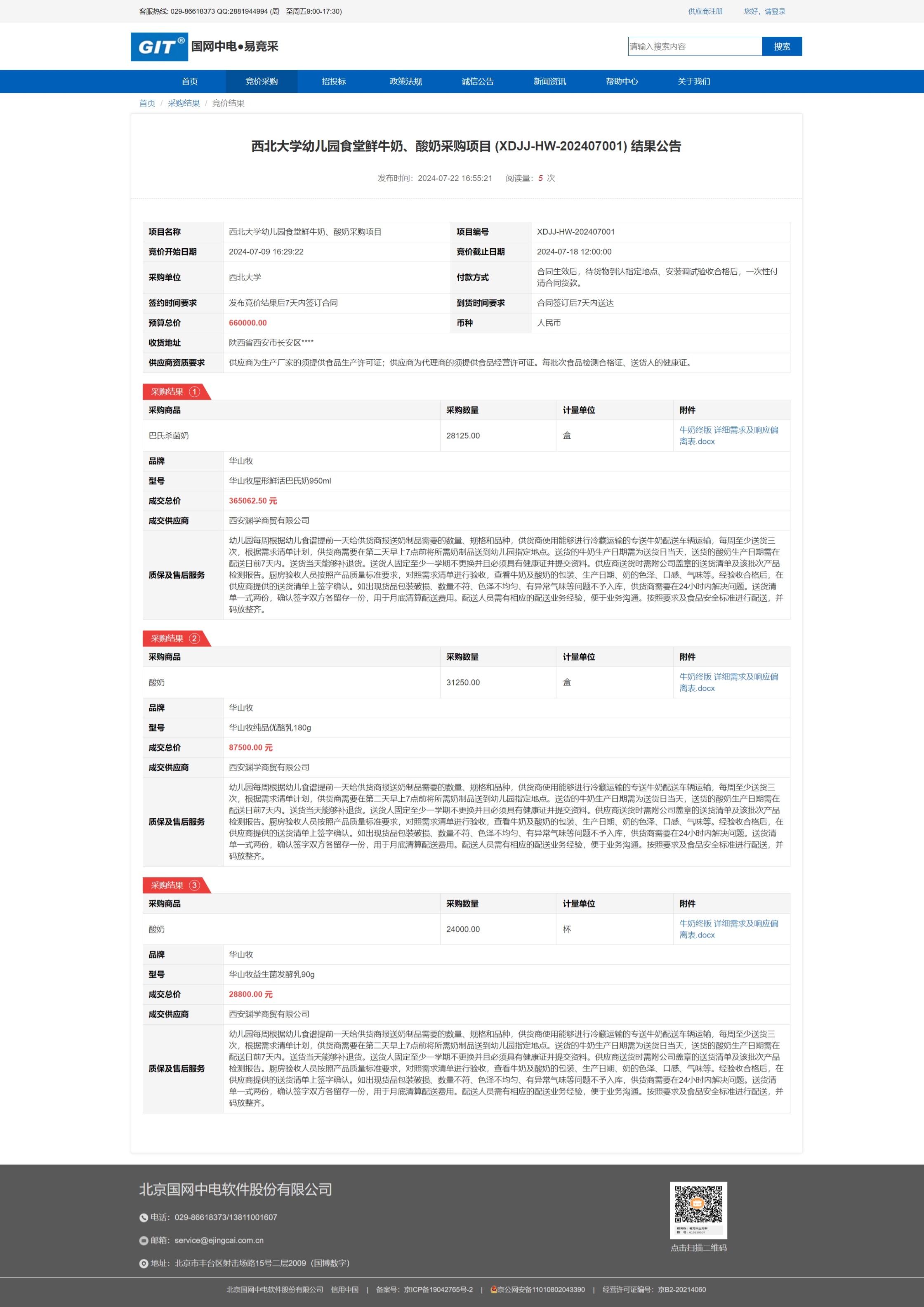 米兰买球幼儿园食堂鲜牛奶、酸奶采购项目 (XDJJ-HW-202407001) 竞价结果公告 作者: 编辑:采购与招标办公室 时间:2024-07-22 原公告链接:https://www.ejingcai.com.cn/site/bidding/detail/11809
