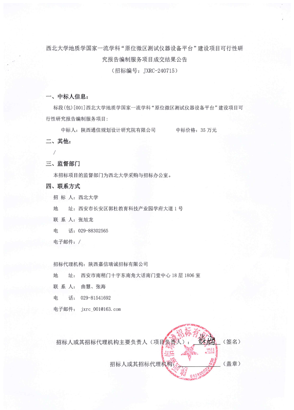 米兰买球地质学国家一流学科“原位微区测试仪器设备平台”建设项目可行性研究报告编制服务项目成交结果公告