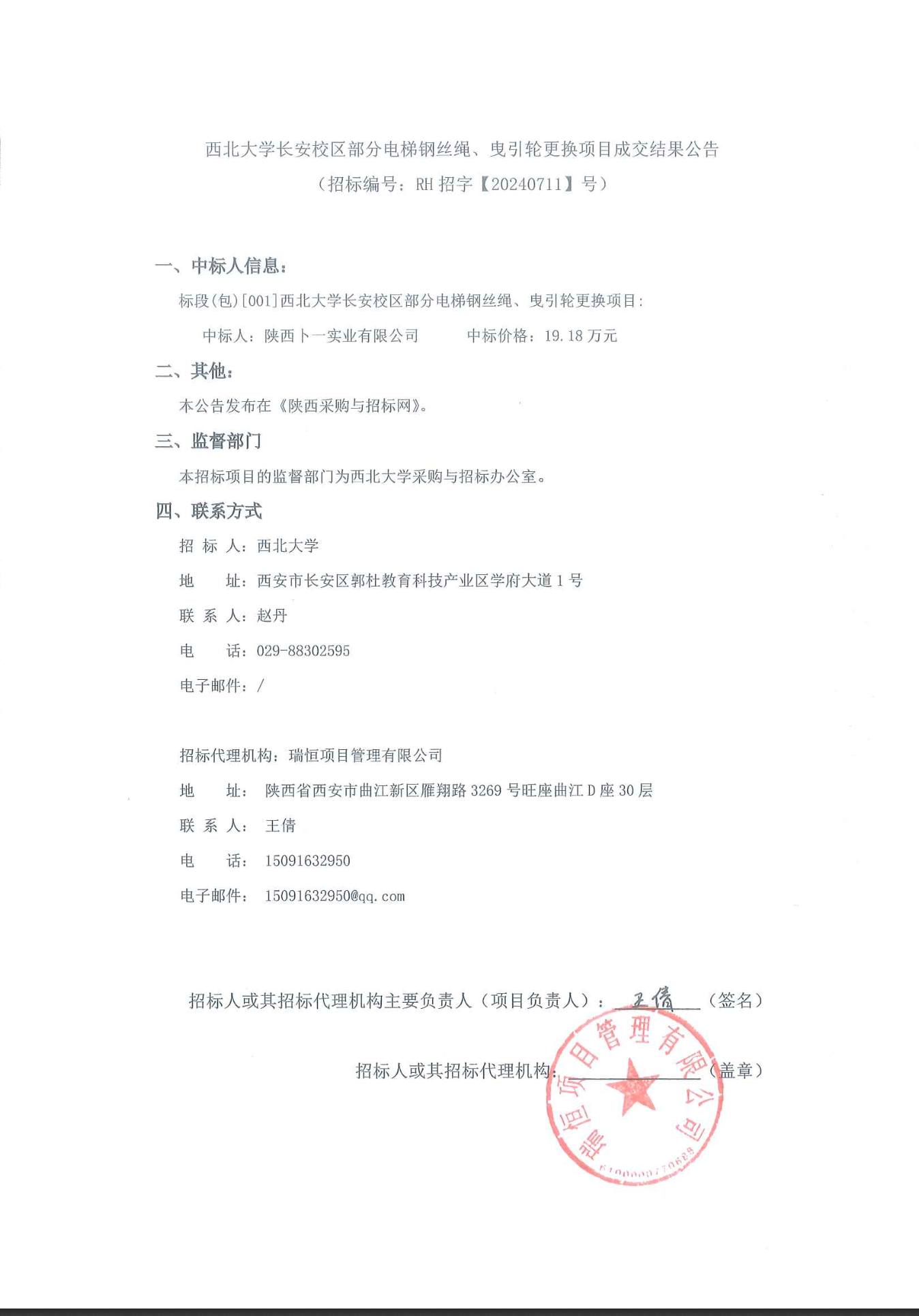 米兰买球长安校区部分电梯钢丝绳、曳引轮更换项目成交结果公告