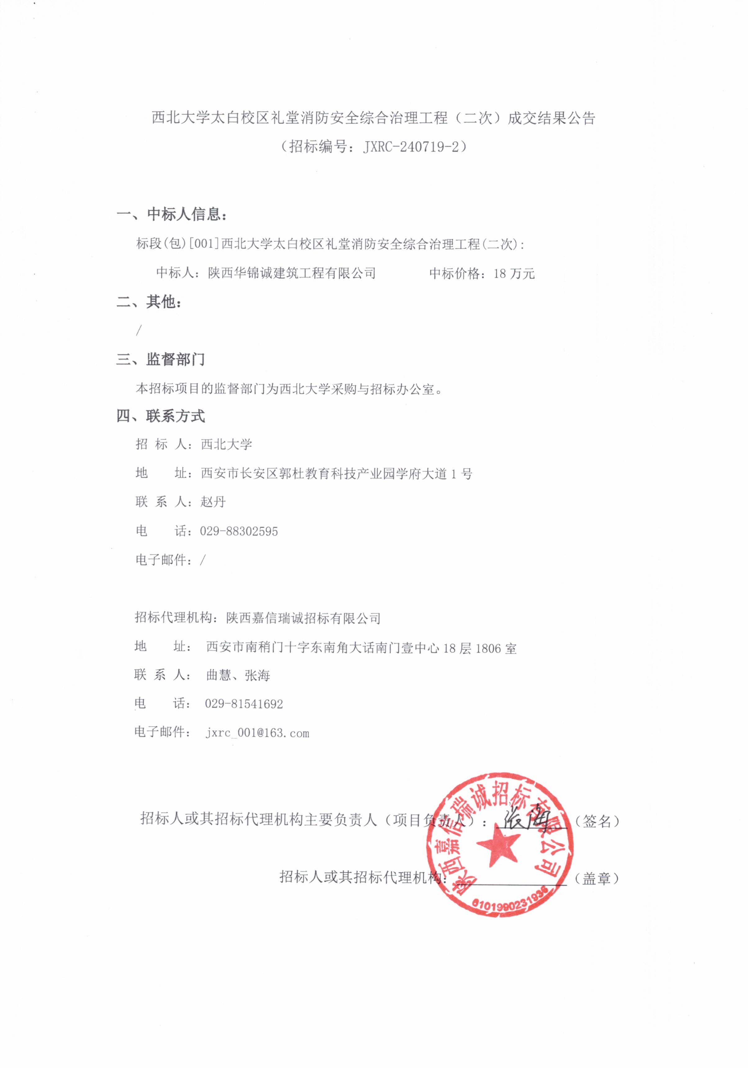 米兰买球太白校区礼堂消防安全综合治理工程(二次)成交结果公告