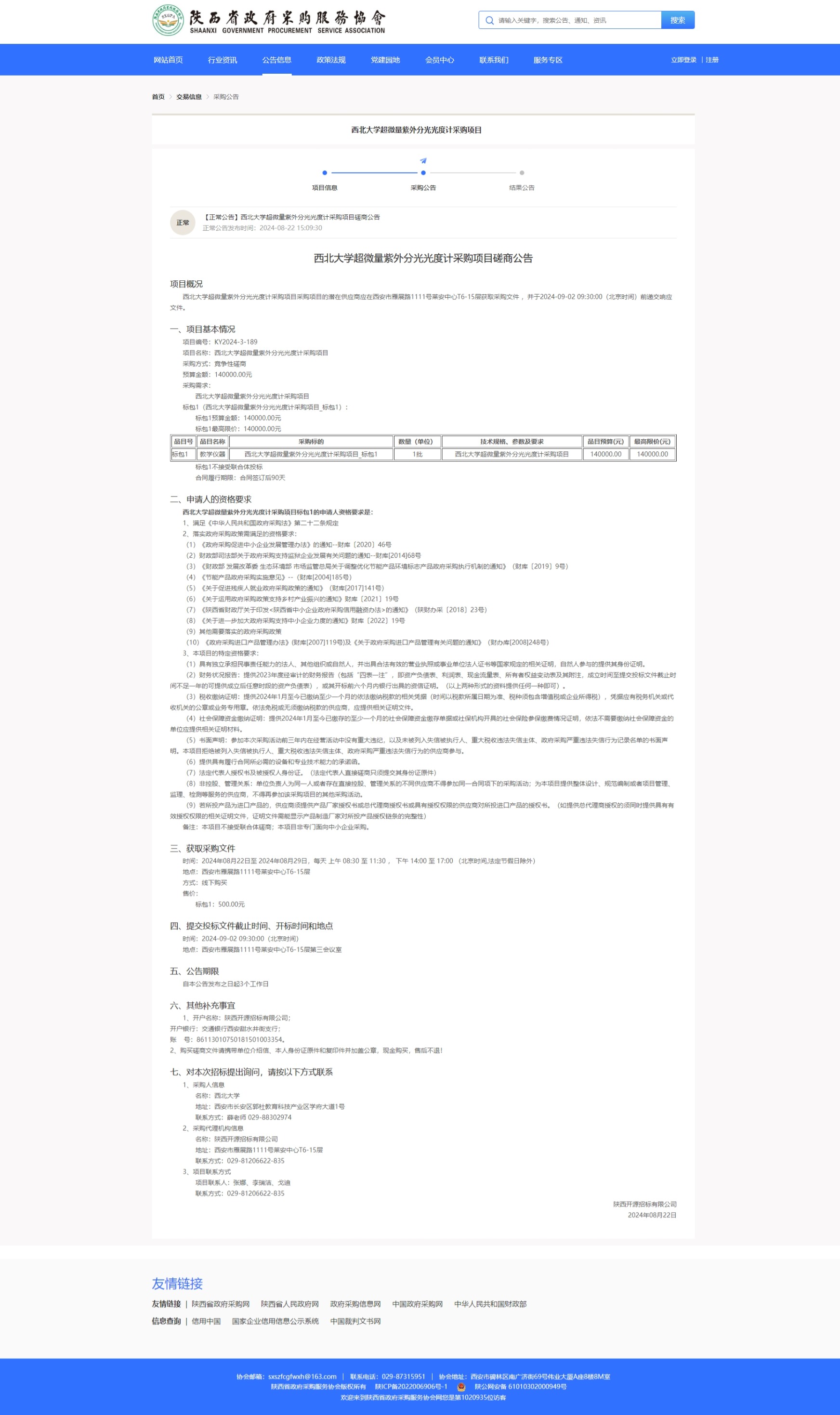 米兰买球超微量紫外分光光度计采购项目磋商公告 作者: 编辑:采购与招标办公室 时间:2024-08-23 原公告链接:https://www.sxszfcgfwxh.cn/#/tender-vTradeAnnouncement-anno?tenderProjectId=1826435442958446594&rootId=1549250743389216770
