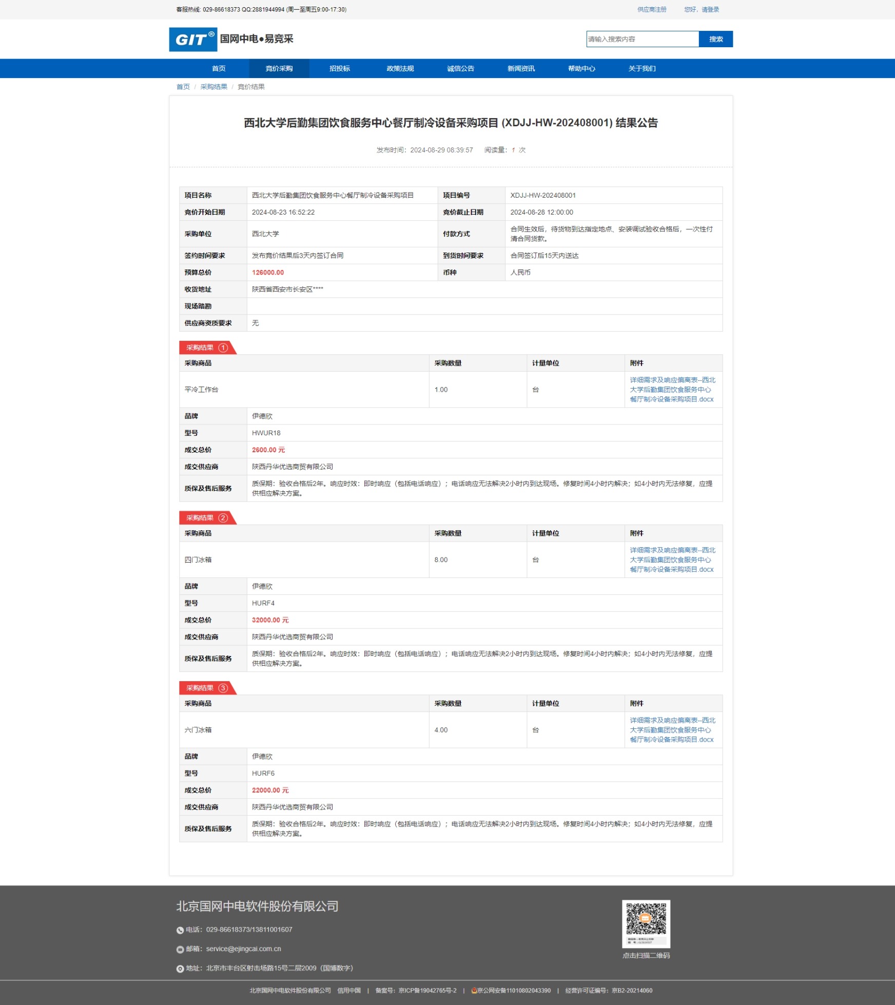 米兰买球后勤集团饮食服务中心餐厅制冷设备采购项目 (XDJJ-HW-202408001) 竞价结果公告 作者: 编辑:采购与招标办公室 时间:2024-08-29 原公告链接:https://www.ejingcai.com.cn/site/bidding/detail/12245