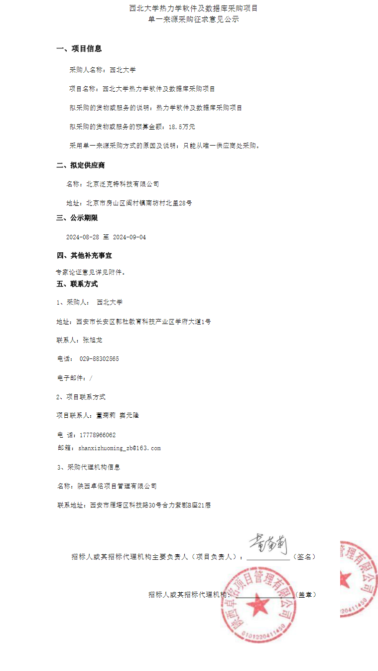 米兰买球热力学软件及数据库采购项目单一来源采购征求意见公示